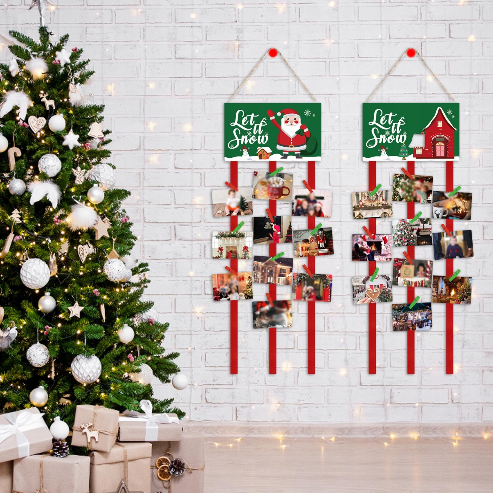 2 держателя для рождественских открыток с 40 зажимами для поздравительных открыток и фотографий для дисплея