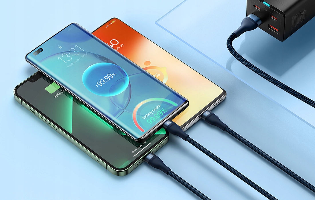 ✔️Быстрая зарядка до 100 Вт: обеспечивает быструю зарядку устройств, поддерживающих высокую мощность зарядки, что значительно сокращает время, необходимое для зарядки аккумулятора.