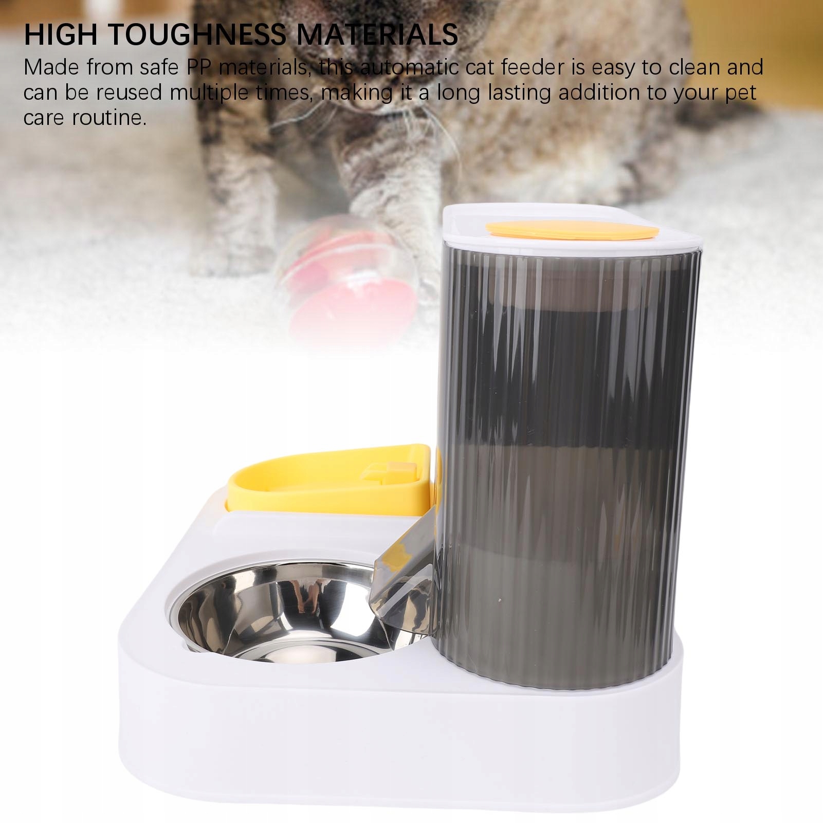 4. Материалы с высокой силой: изготовленные из безопасных материалов PP, этот автоматический кормление для кошек легко чистить и может быть использован повторно, что делает его долговечным дополнением к рутинному уходу за домашними животными.