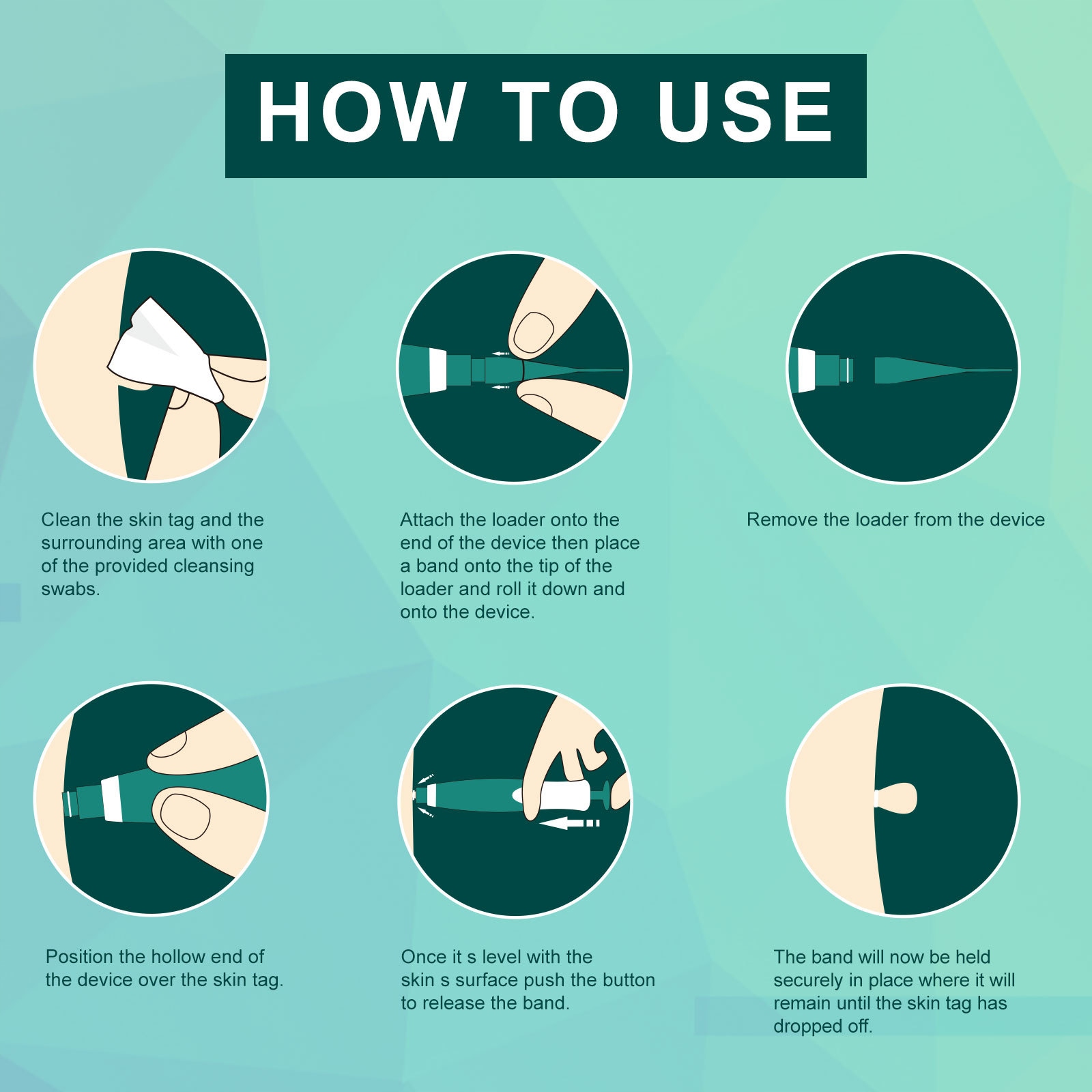 Полосы, включенные в набор, изготовлены из резины. Они не могут быть использованы людьми с резиновой аллергией. Этот набор не предназначен для использования для других кожных заболеваний, таких как бородавки или родинки. Этот продукт не предназначен для диагностики, лечения или предотвращения кожных заболеваний. Перед использованием проконсультируйтесь с врачом.