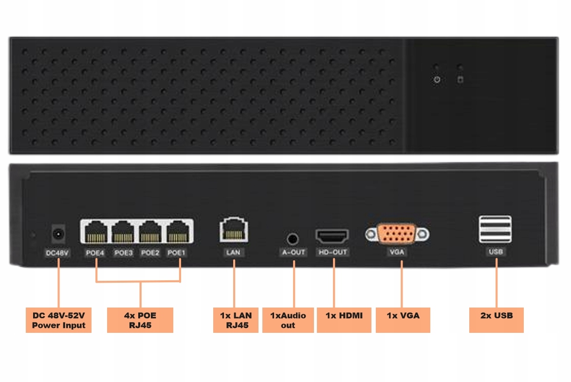 2 в 1 NVR+Switch POE 4X RJ45 100 Мбит / с+LAN+HDMI+VGA+AUDIO+USB DEVICE