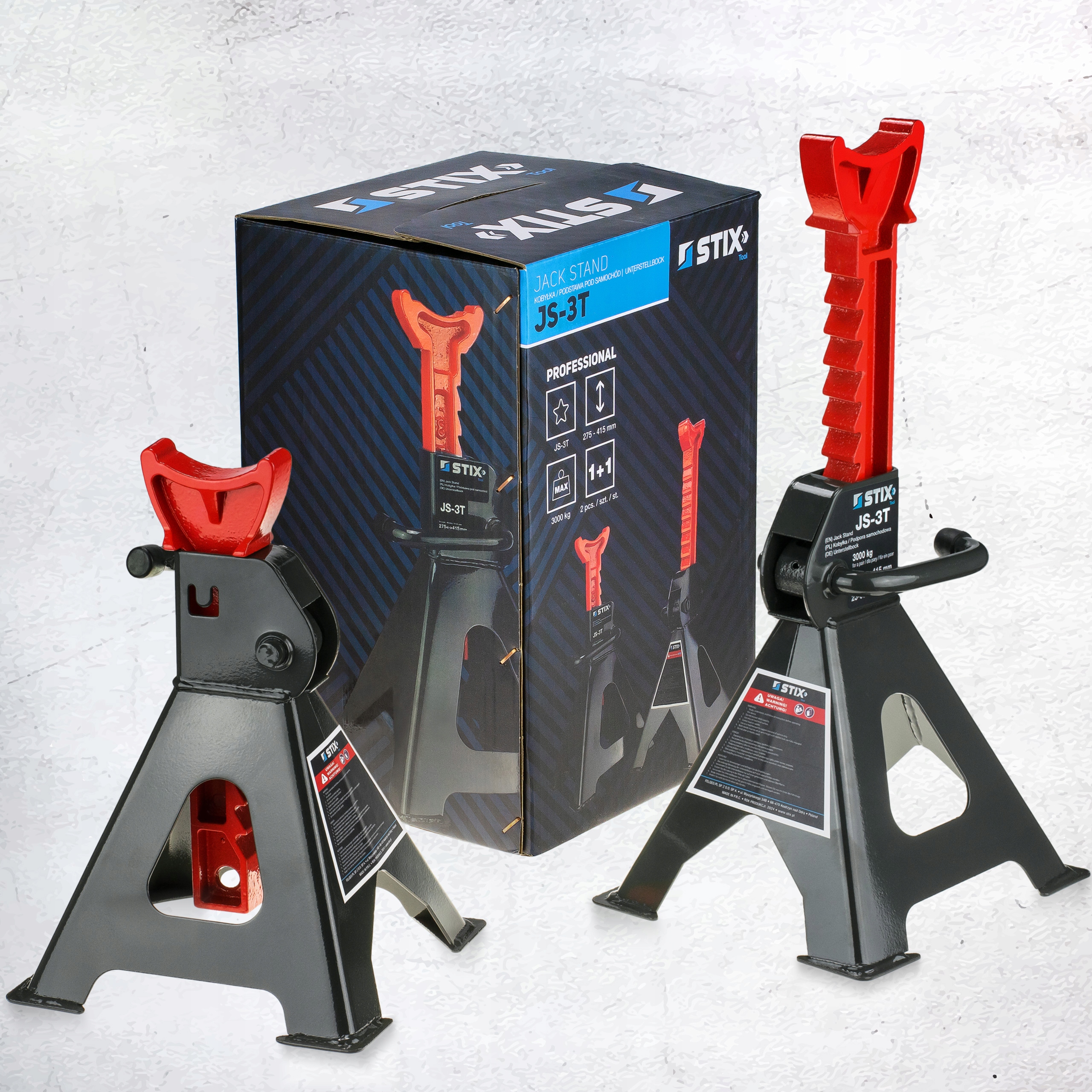 АВТОМОБИЛЬНЫЕ ДОМКРАТЫ STIX TOL JS-3T С ХРАПОВЫМ МЕХАНИЗМОМ - 3Т, РЕГУЛИРУЕМЫЕ СТОЙКИ ДЛЯ МАСТЕРСКИХ - 2 шт