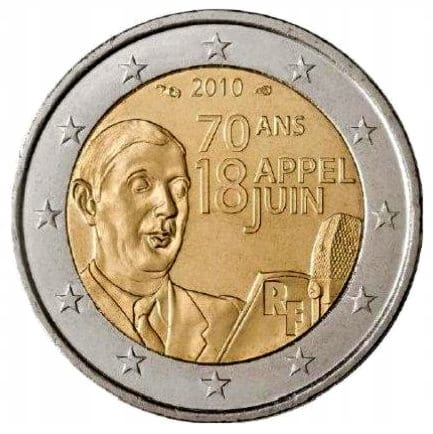 Описание: монета отмечает апелляцию, присваивающую на радио Би -би -си в Лондоне 18 июня, после капикуляризации Франс -Генерал - свободный лидер - свободный лидер - свободный лидер. Франция во время Второй мировой войны. Де Голль обратился к французской нации не рассматривать войну завершением. Из этой апелляции французское движение сопротивления и борьба с оккупантом