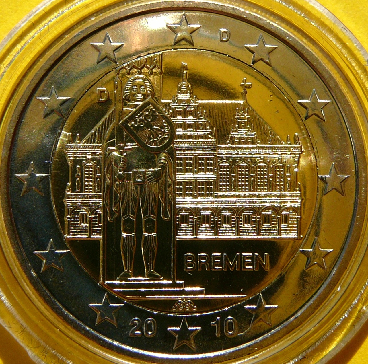 2 ЄВРО НІМЕЧЧИНА 2010 Д РАТУША В БРЕМЕНІ ПАМ'ЯТНИК РОЛАНДУ