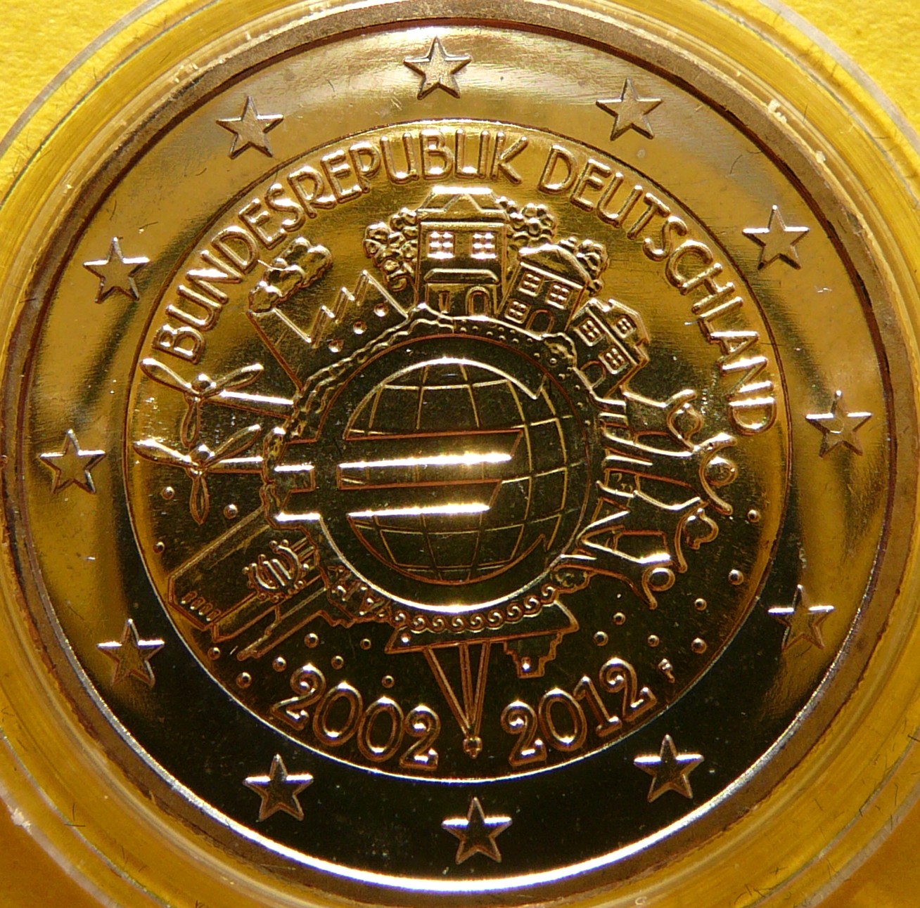 2 ЄВРО НІМЕЧЧИНА 2012 -F- 10 РІЧНИЦЯ ВВЕДЕННЯ ВАЛЮТИ ЄВРО