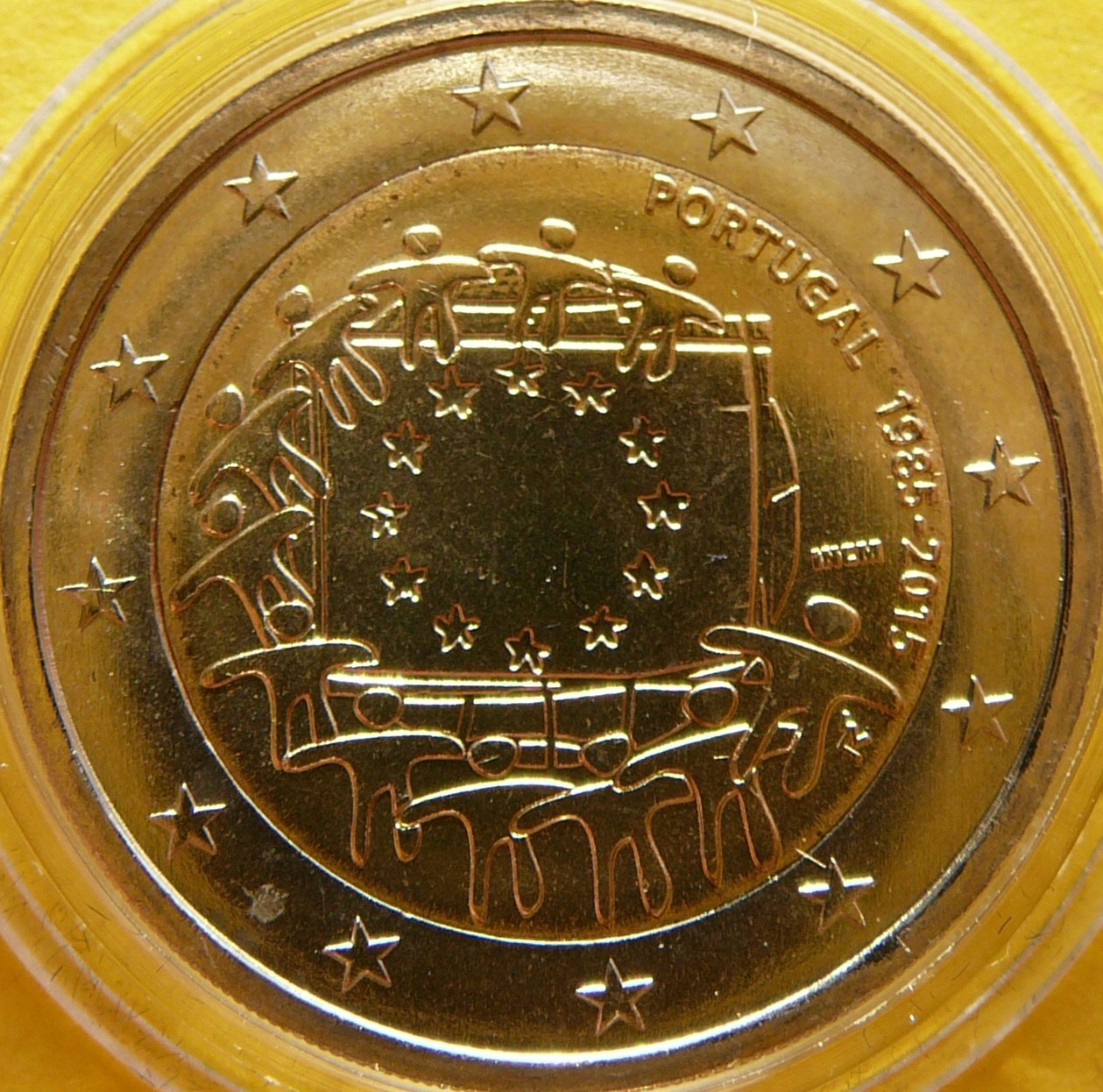 2 ЄВРО ПОРТУГАЛІЯ 2015 ПРАПОР ЄС ЄВРОПЕЙСЬКОГО СОЮЗУ 30 РОКІВ