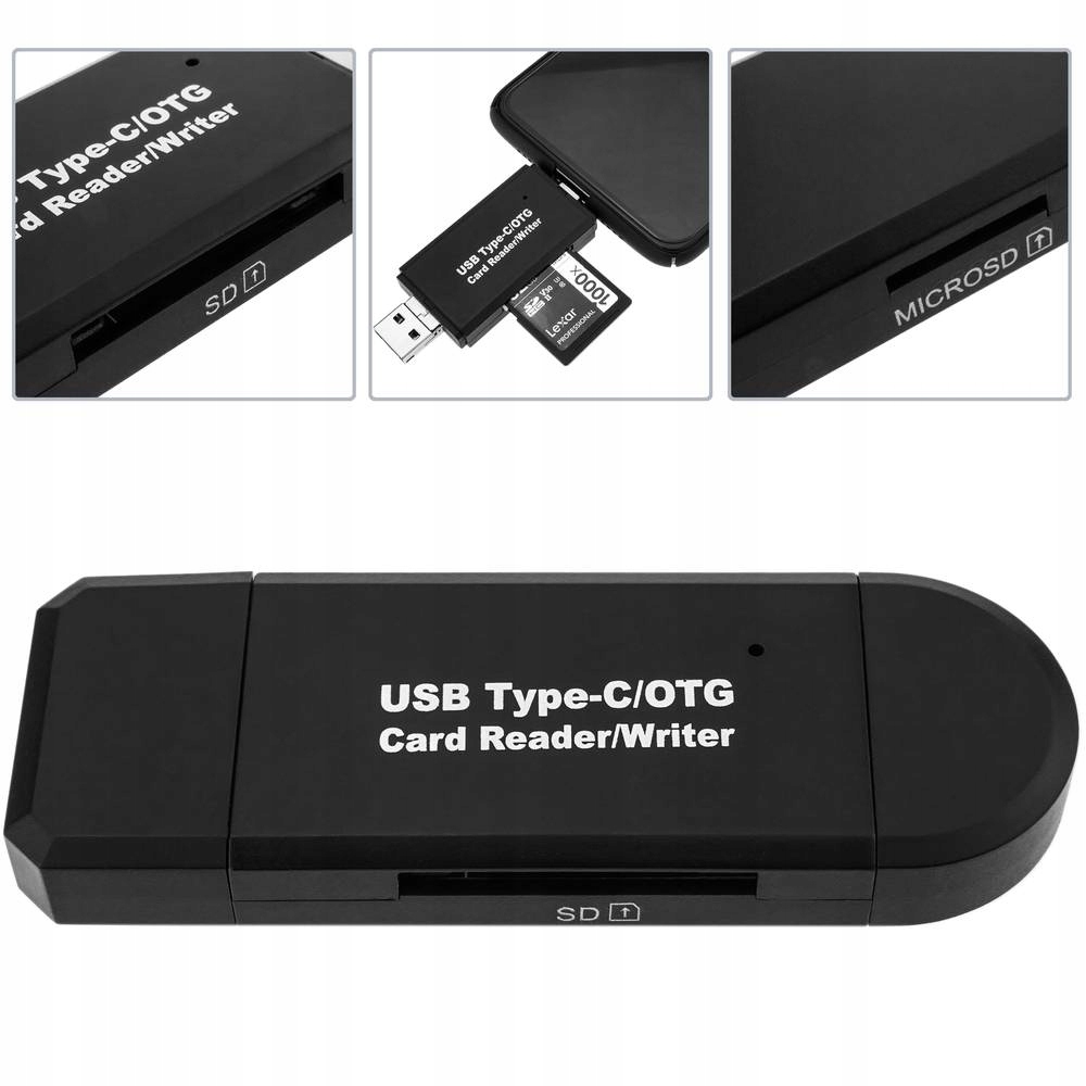 wielofunkcyjny czytnik kart posiada aż 3 zącza usb - usb/usb -c/usb 3.1 typ c/micro usb. Такое большое количество входов означает, что этот небольшой считывающий устройства для карт 5IN1 позволит вам легко передавать данные между устройствами.