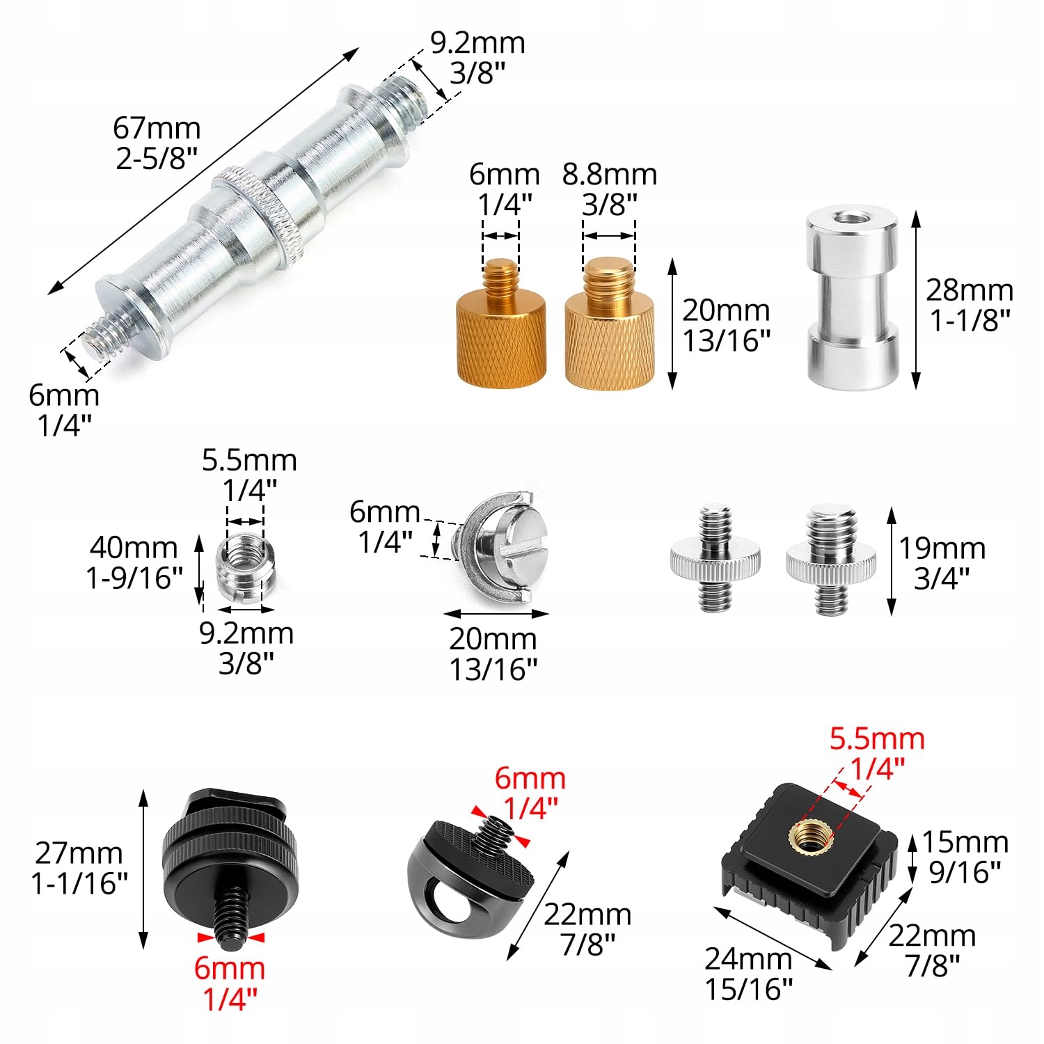 ✅ представляет собой набор винтов и адаптеров различных размеров (1/4-3/8, 3/8-1/4, 1/4-1/4). Он предоставляет комплексные решения для ваших фотографических потребностей, предоставляя вам много вариантов конфигурации. p>