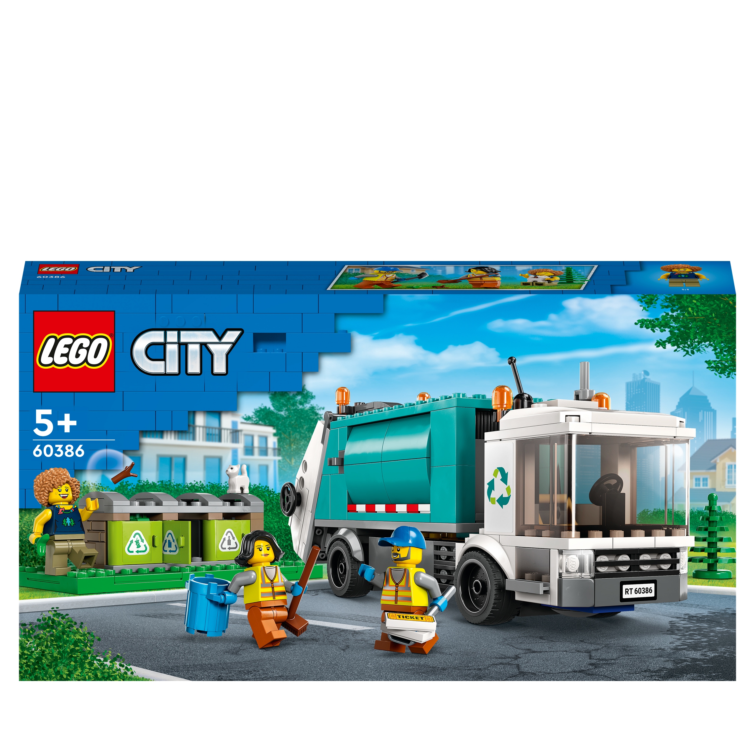 Дети, которые заботятся об окружающей среде, будет в восторге от набора грузовиков LEGO® City Recycling, который состоит из центра по утилизации, трех минифигурных вегеров и фигурки для кошек. Утилизация (60386) содержит много реалистичных элементов, в том числе центр переработки с тремя контейнерами. Грузовик имеет наклонный лифт для опорожнения контейнеров и приподнятую платформу для разгрузки. Добавьте еще три минифигур и кошку, и вы можете начать играть.