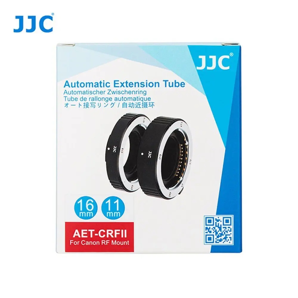 Набор из двух промежуточных колец JJC AET II с автоматической передачей, предназначенной для камер канон с монтажом RF. Набор является альтернативой дорогостоящим макро -линзам. Кольца, расположенные между корпусом камеры и объектива, позволяют увеличить расстояние между плоскостью фокусировки объектива и фоточувствительным материалом в аппарате (матрица) и, таким образом, получают больший масштаб картирования. Кольца могут использоваться индивидуально или вместе.