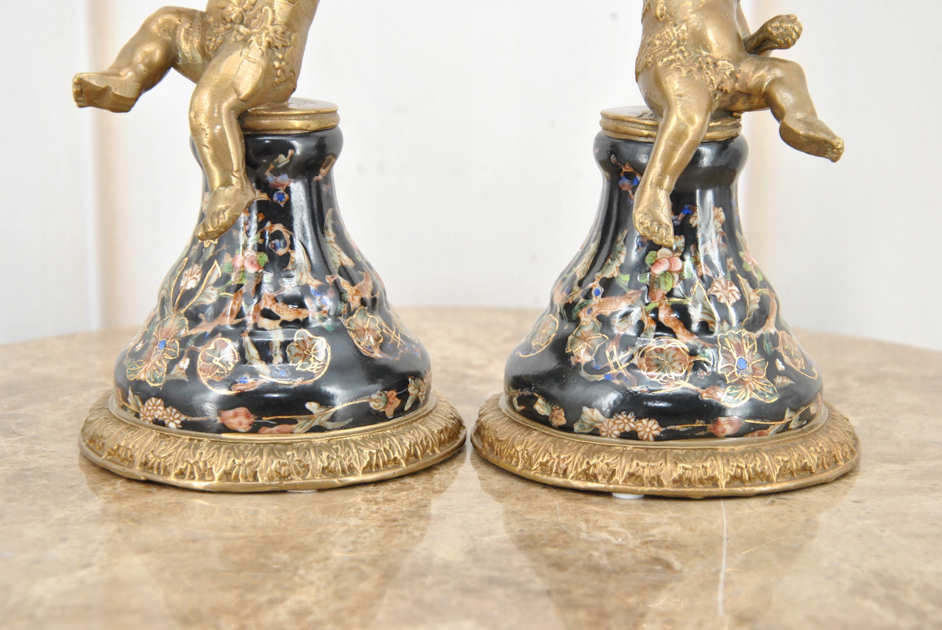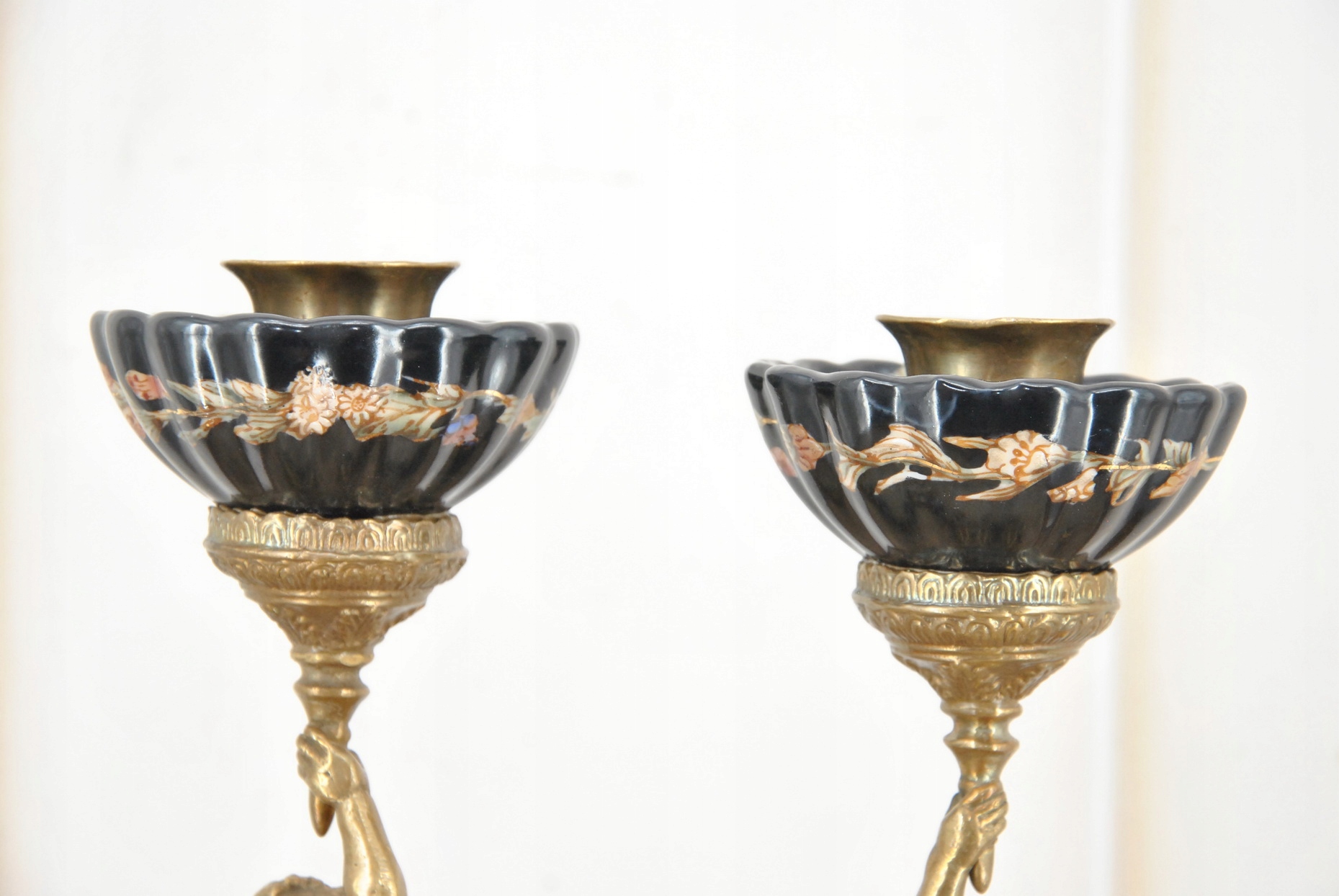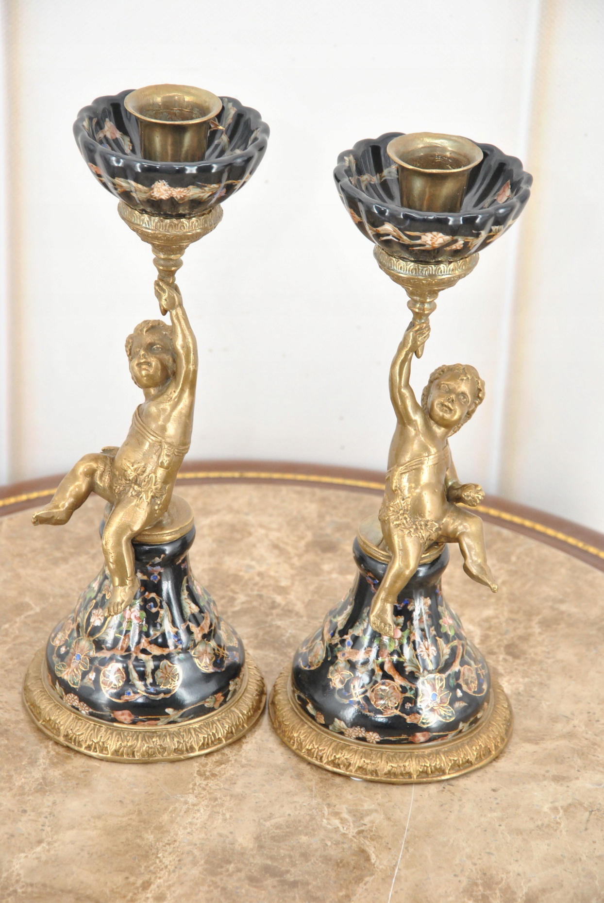 2 x фарфоровые подсвечники Ангелы - Ангел Амор - Черный фарфор + бронза