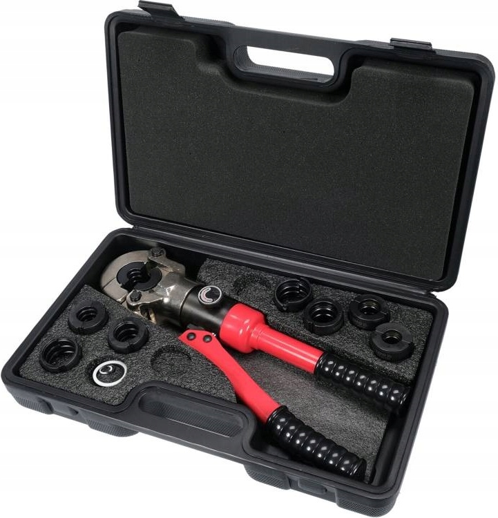 Ручной гидравлический пресс для обжима соединителей на трубах PEX-AL-PEX и PERT-AL-PERT с комплектом из 8 матриц. Он оснащен гидроприводом, позволяющим точно и плотно затягивать разъемы с усилием давления 10Т. Система быстрой смены матрицы обеспечивает легкую замену матрицы.