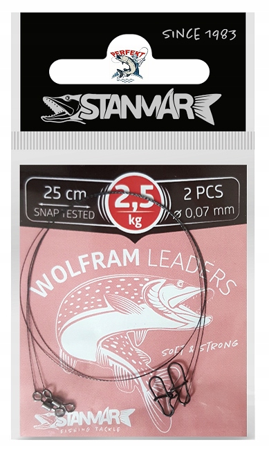 Отличный, гибкий вольфрамовый поводок с цилиндрическим вертлюгом и прочным английским штифтом DUAL LOCK.