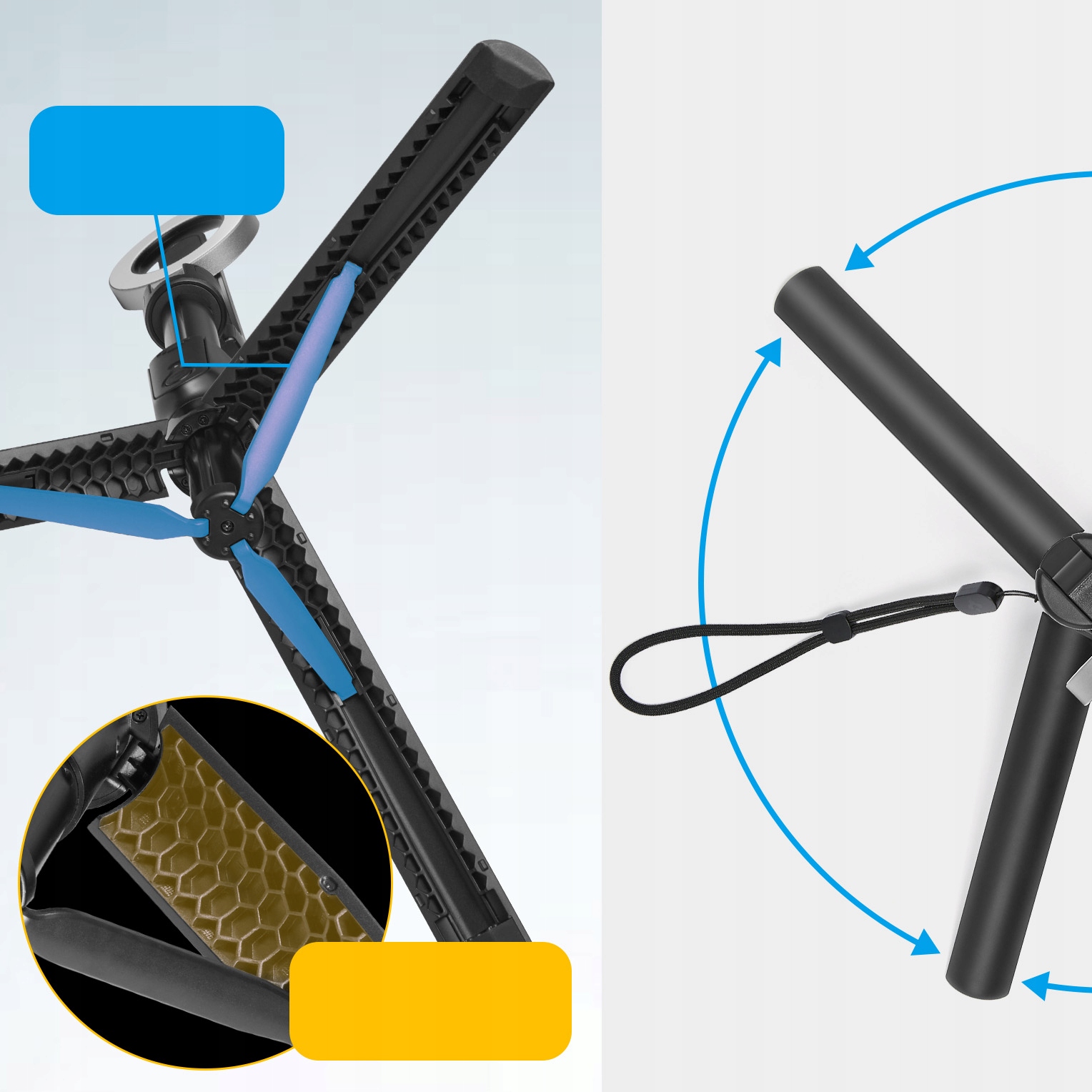 палочка оснащена телескопической трубкой , которая позволяет захватить широкий угол. Кроме того, три ножки штатива гарантируют стабильность при фотографировании и фильмах, что делает его практическим инструментом для создания профессионального контента.