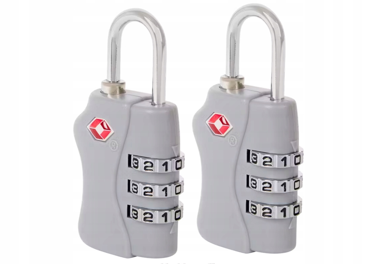 2 x НАВЕСНОЙ ЗАМОК С СИСТЕМНЫМ КОДОМ TSA ДЛЯ БАГАЖНОГО ЧЕМОДАНА СЕРЫЙ