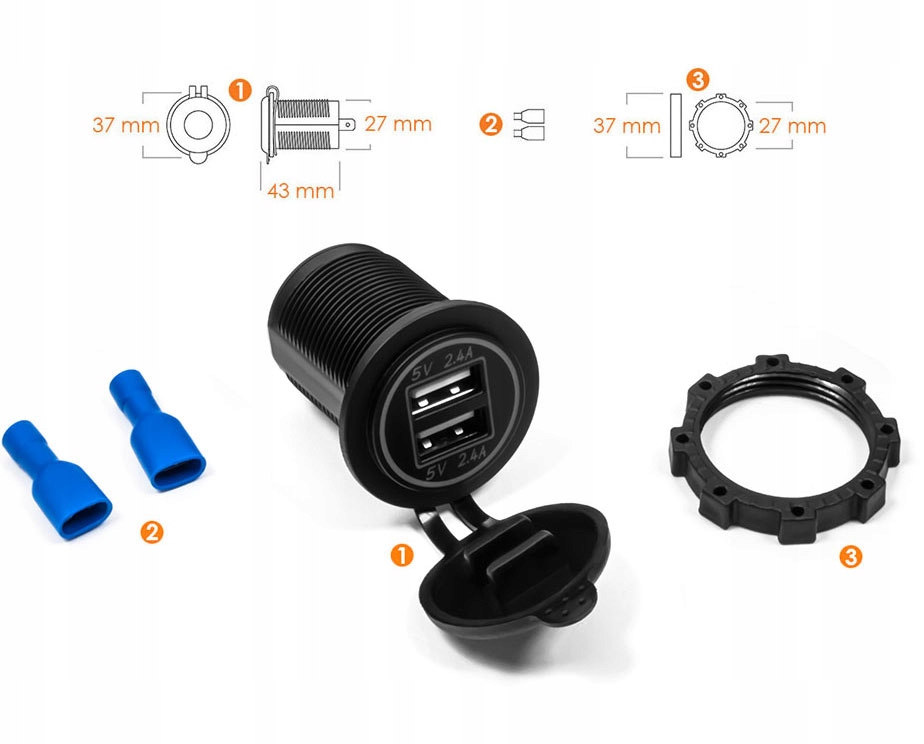 2 X USB РОЗЕТКИ - 4,8 A - ДЛЯ ВСТРОЄНОГО МОТОЦИКЛА
