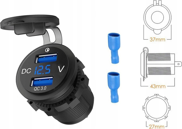 2 разъема USB для мотоцикла — 36 Вт — вольтметр — быстрая зарядка QC3.0
