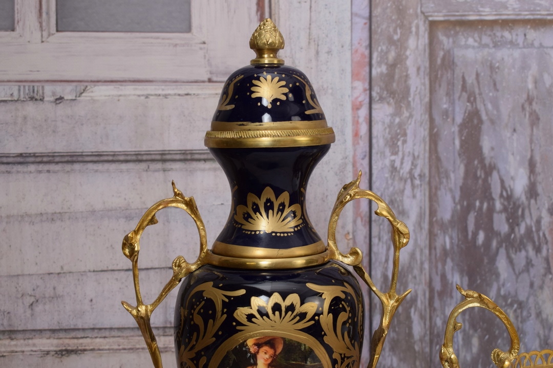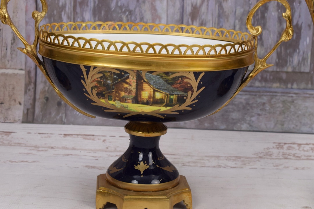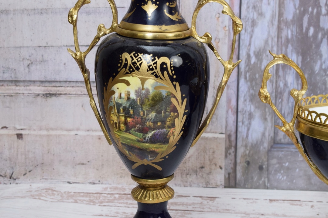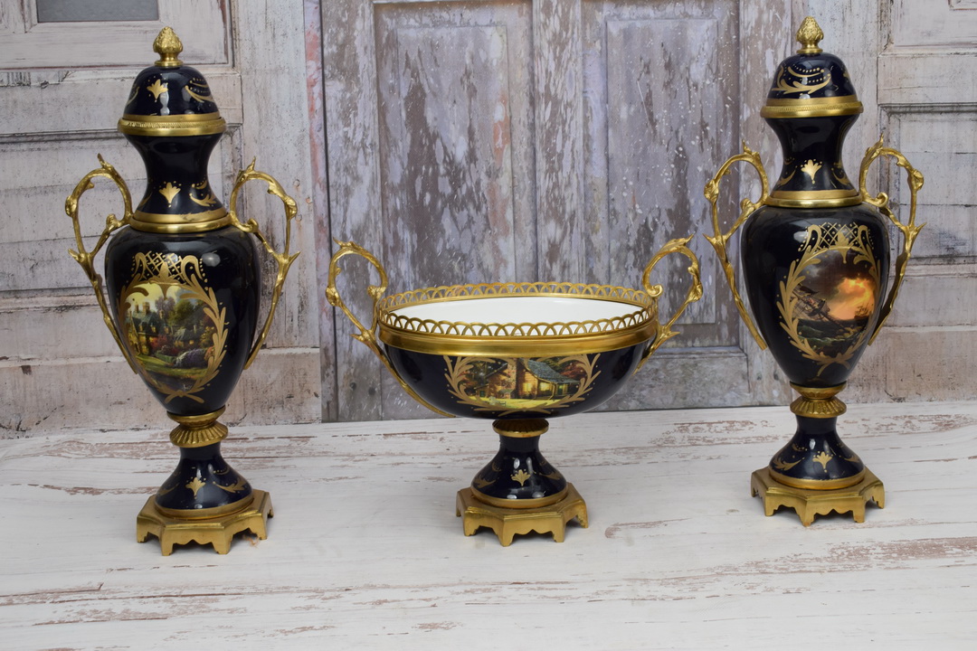 2 вази + блюдо - набір для французького каміна - порцеляна + латунь