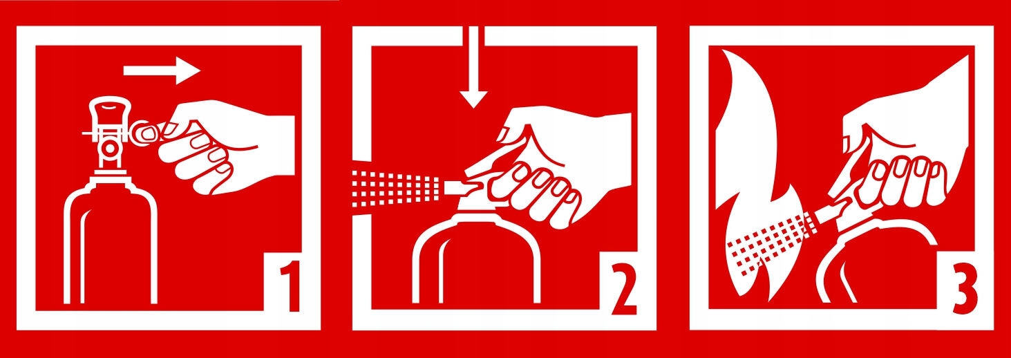1. Потяните безопасность. 2. направьте выпуск клапана на источник огня и нажмите на рычаг. 3. Держите расстояние от мин. 1 метр.