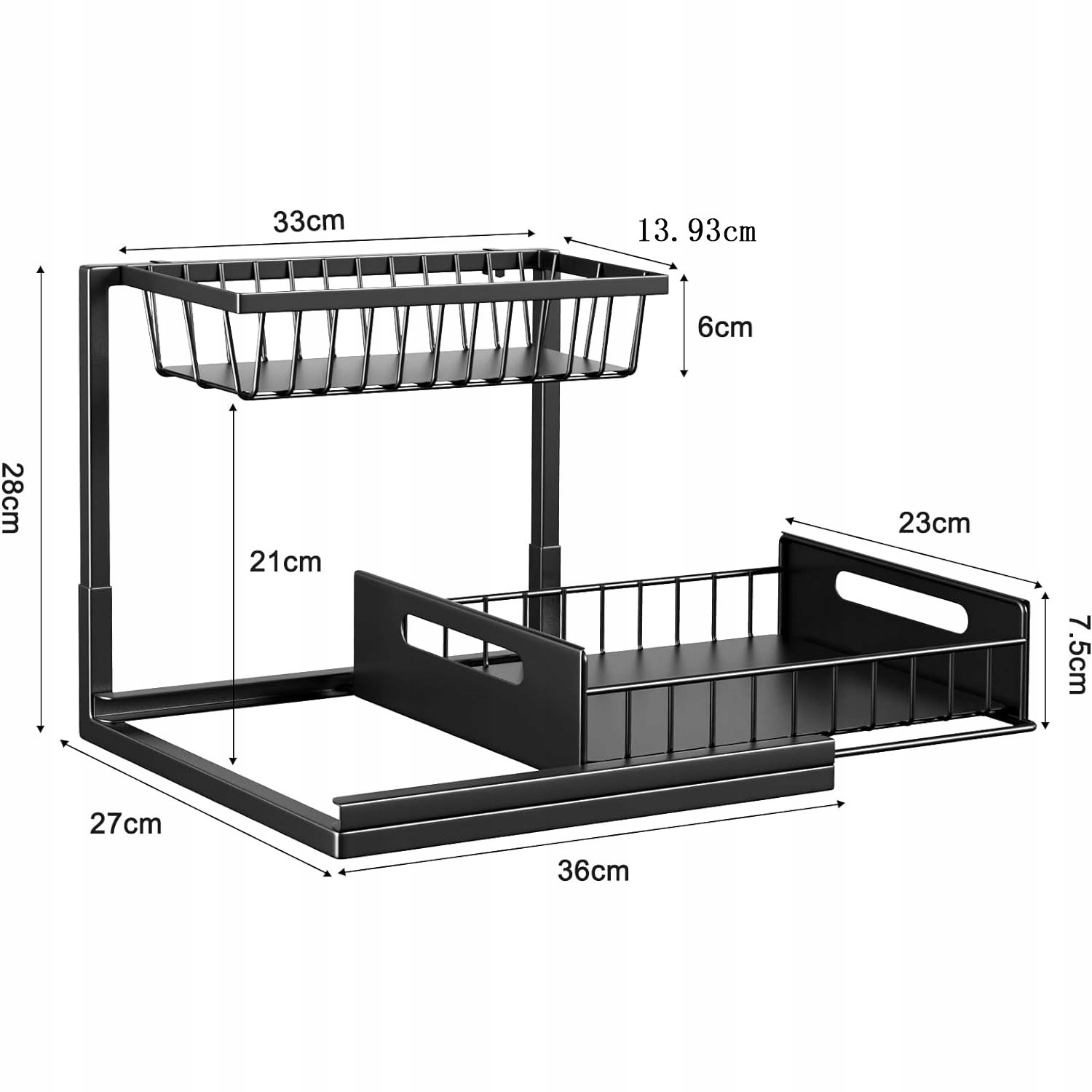 - ⏺️⏺️- Двухслойная конструкция включает нижнюю выдвижную корзину с ручками для удобного доступа в ограниченном пространстве.