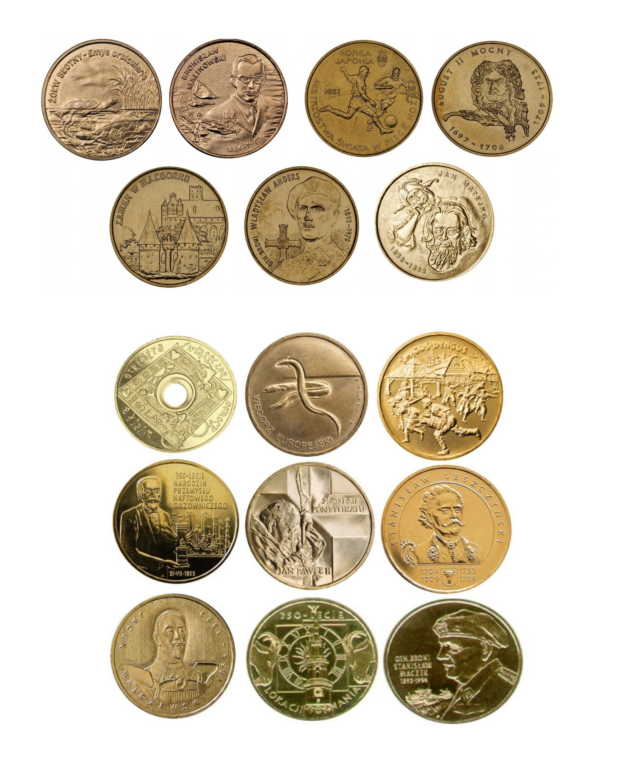Набор из 2 памятных монет польских злотых 1996-2014 гг.
