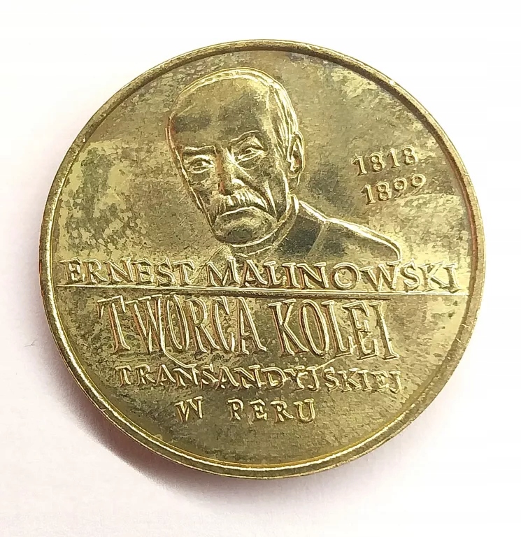 Для вас мы продаем 2 злотых 1999 г.: ЭРНЕСТ МАЛИНОВСКИ СОЗДАТЕЛЬ ТРАНСАНДИЙСКОЙ ЖЕЛЕЗНОЙ ДОРОГИ В ПЕРУ