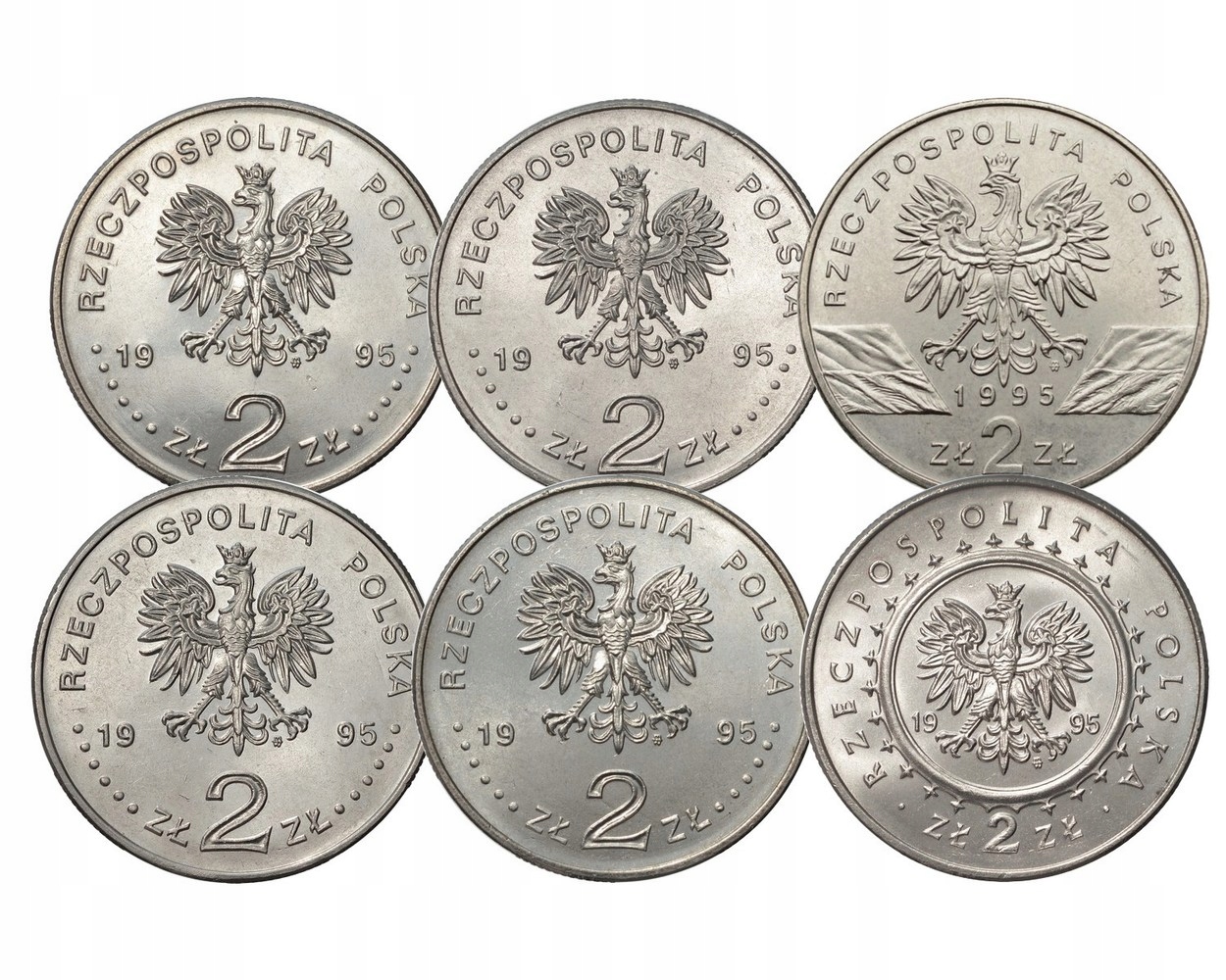 2 злотых MN 1995 г. Комплект из 6 монетных дворов