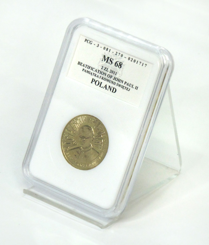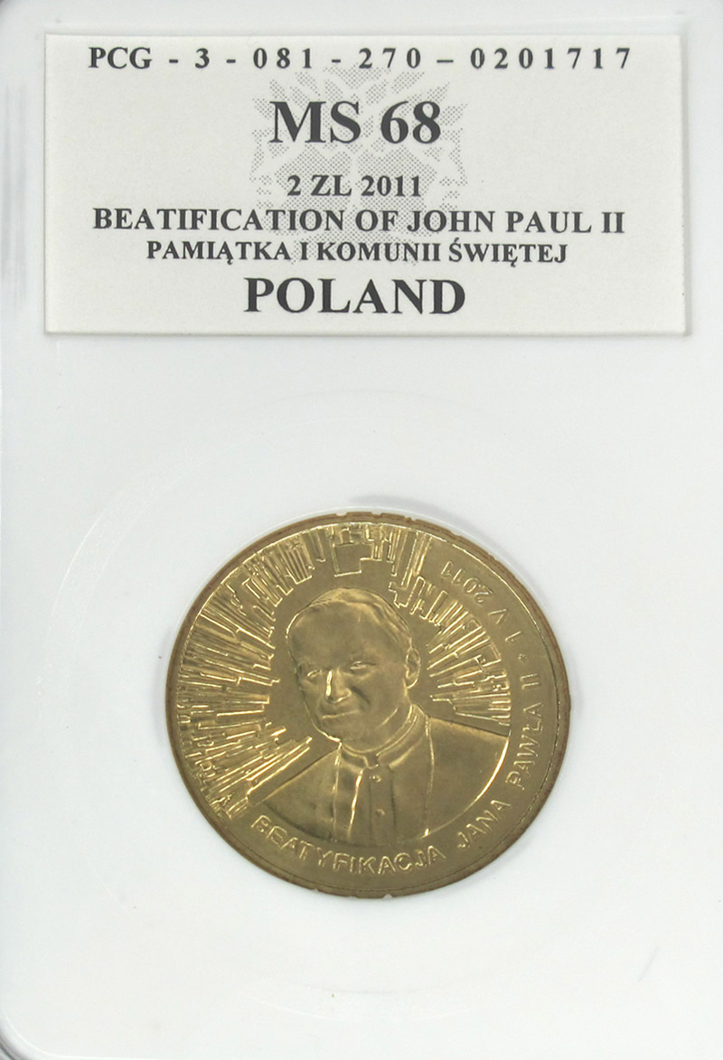 Предлагаем монету номиналом 2 злотых с изображением Иоанна Павла II, выпущенную по случаю беатификации Папы Польши.