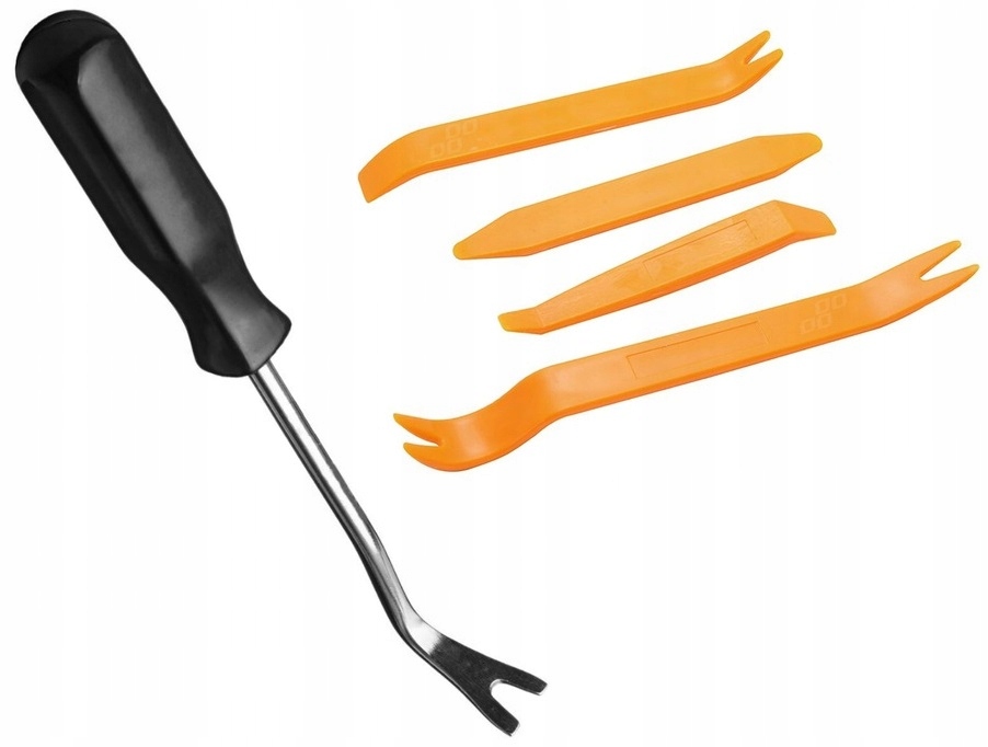 Рычаг позволяет легко разбирать штифты обивки без риска повредить края при их снятии. Съемник не царапает обивку, позволяя сохранить эстетику салона автомобиля. Ключ для извлечения оснащен удобной нескользящей ручкой. Вы также можете использовать его, чтобы удалить счетчик и радио.