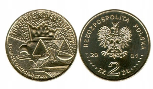 2 ЗОЛОТЫХ GN -2001- 15 ЛЕТ КОНСТИТУЦИОННОГО ТРИБУНАЛА - МОНЕТА STAN 1+