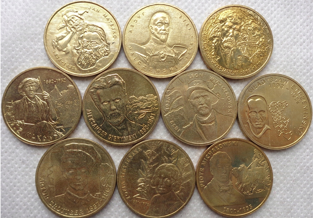 2 ЗОЛОТИХ GN -2002-2012- НАБІР МОНЕТ - ПОЛЬСЬКІ ХУДОЖНИКИ - 10 ШТ.