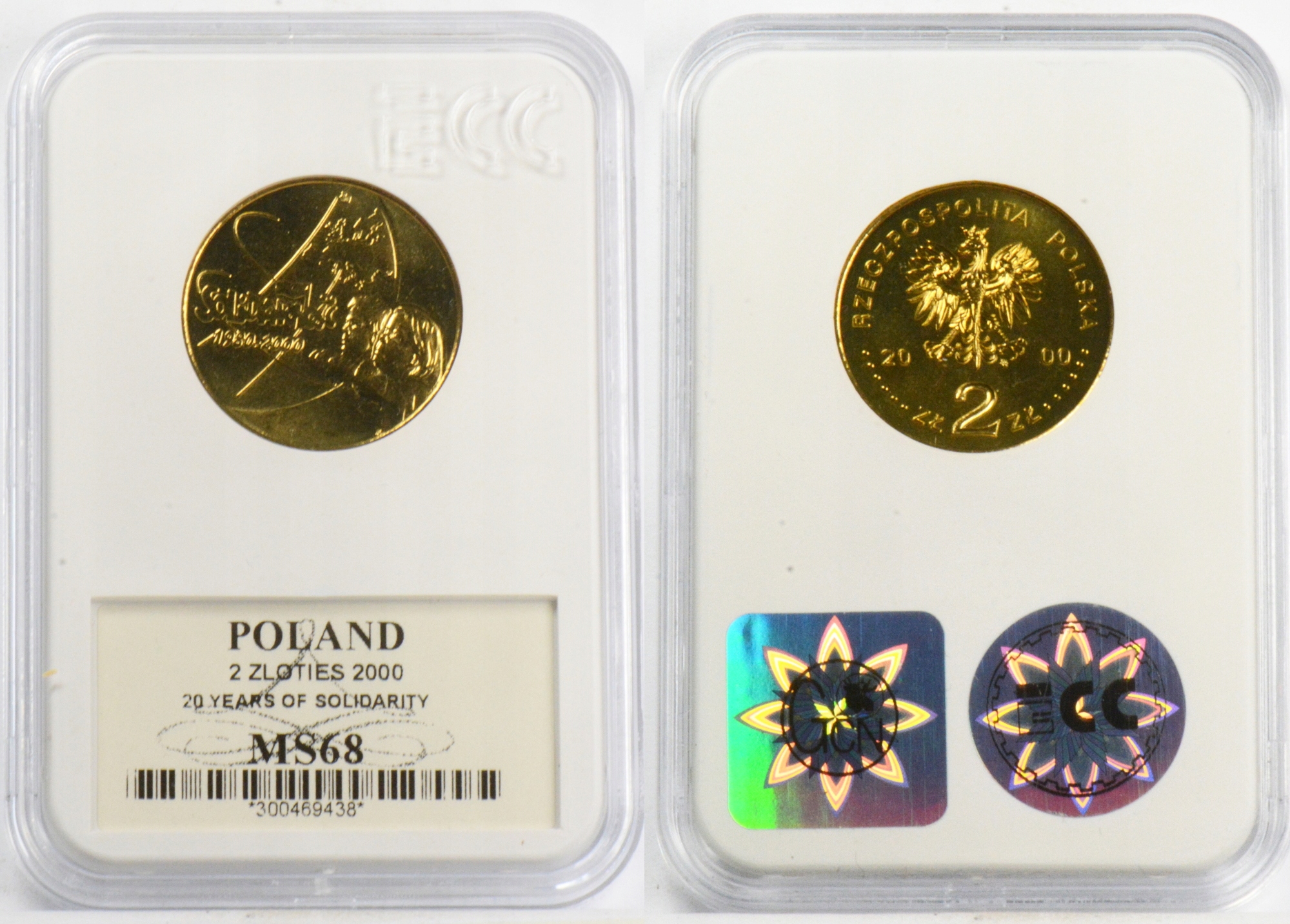 2 ЗЛОТЕ 2000 20 ЛЕТ СОЛИДАРНОСТИ MS68 4.11