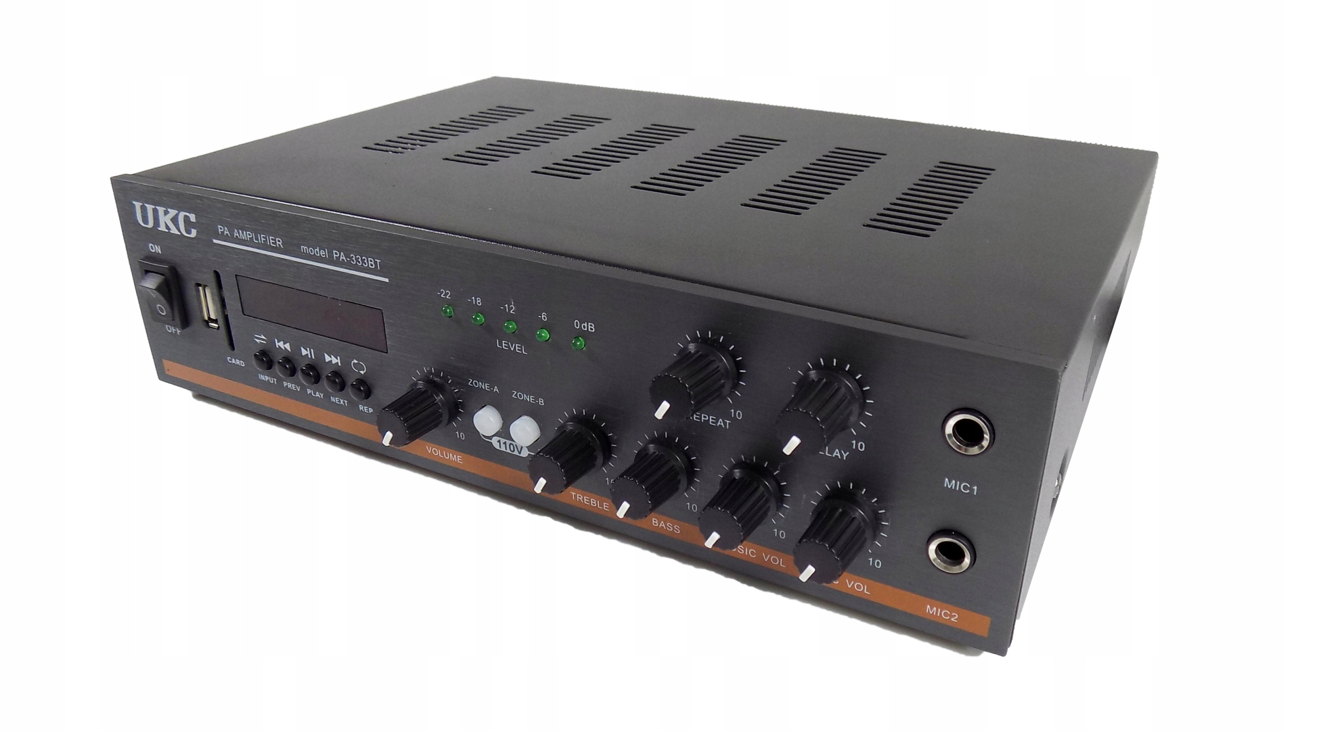 Усилитель имеет два микрофонных входа, позволяющие подключать проводные и беспроводные микрофоны.