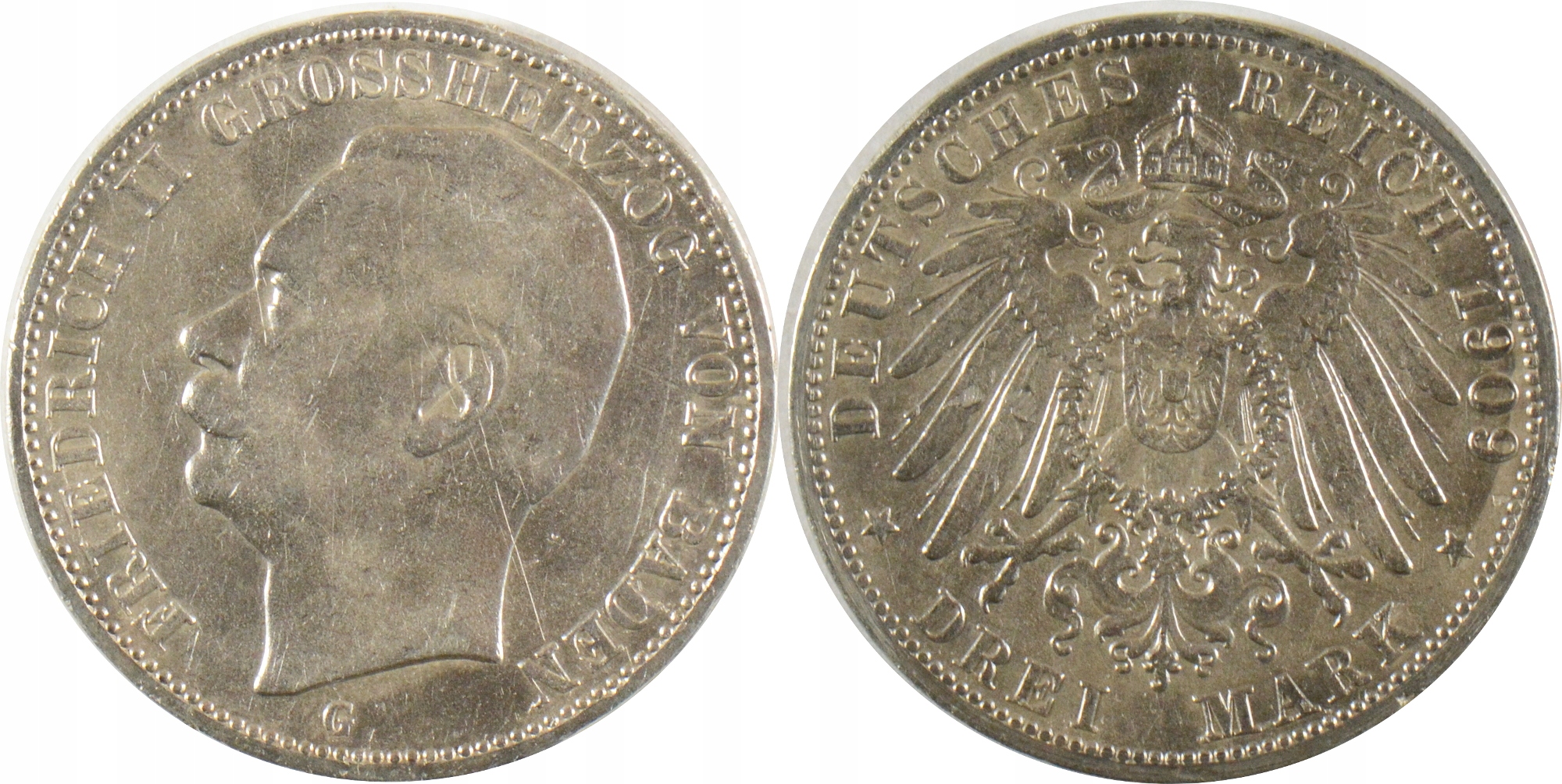 2. Германия Baden 3 Brands 1909 G Серебро 19.09