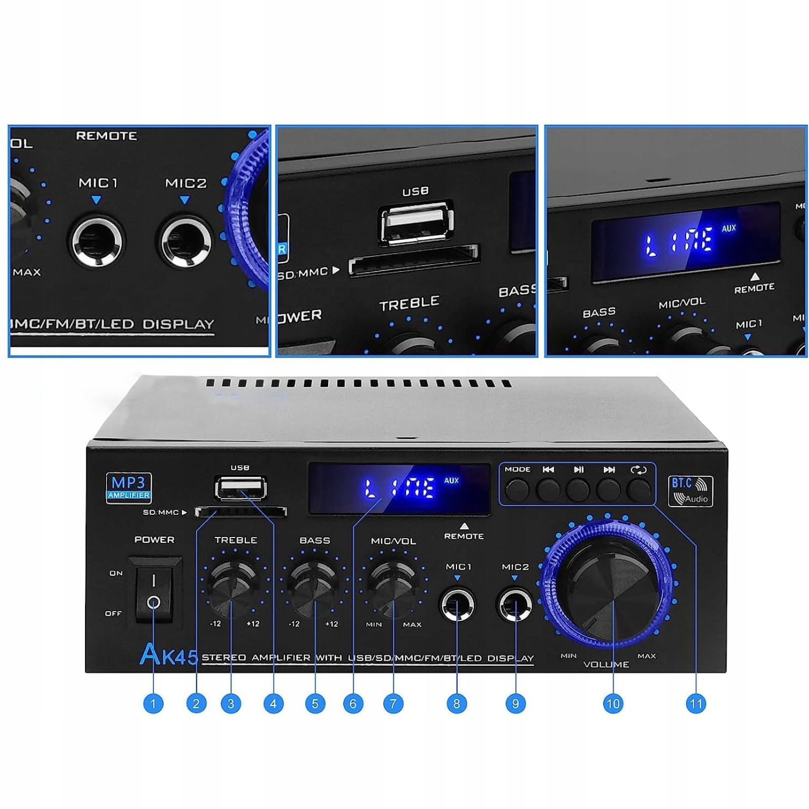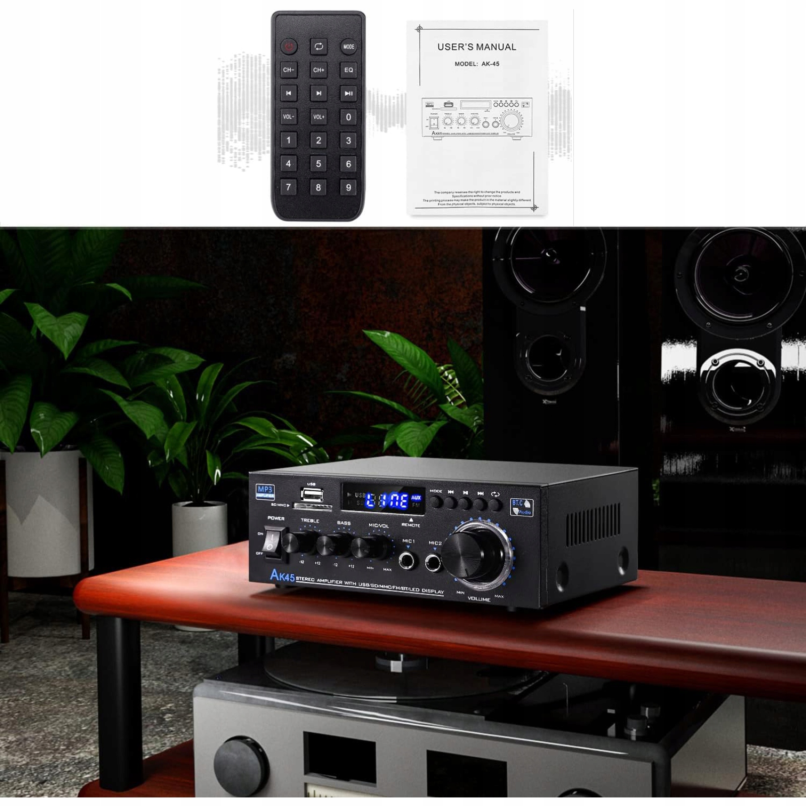 2.0-KANAŁOWY WZMACNIACZ AUDIO BLUETOOTH WZMACNIACZ MOCY AUDIO AK45 SD USB