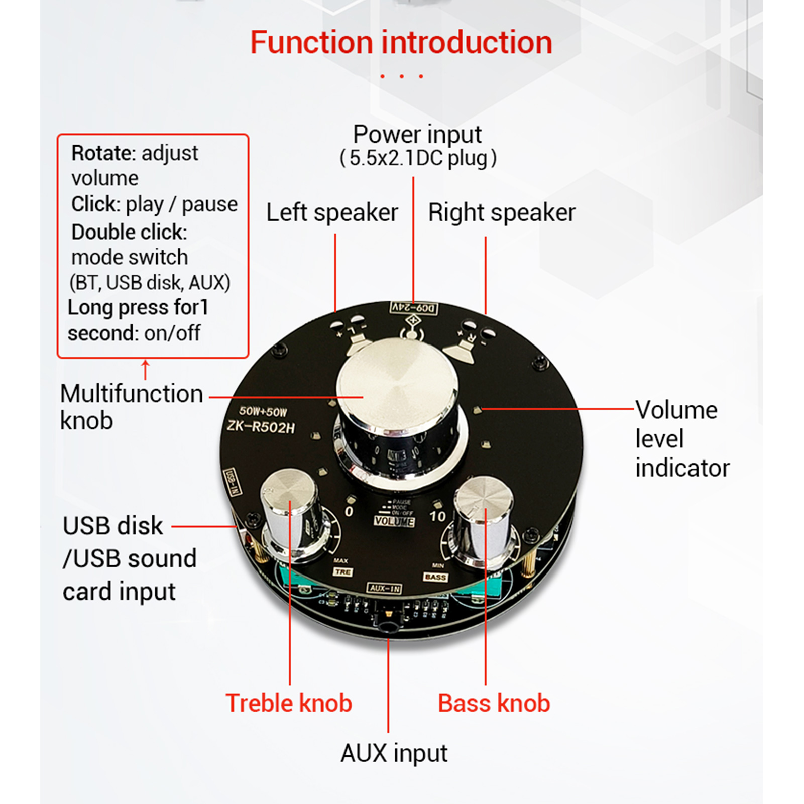 Плата 2.1-канального стереоусилителя Treble Bass AB Control
