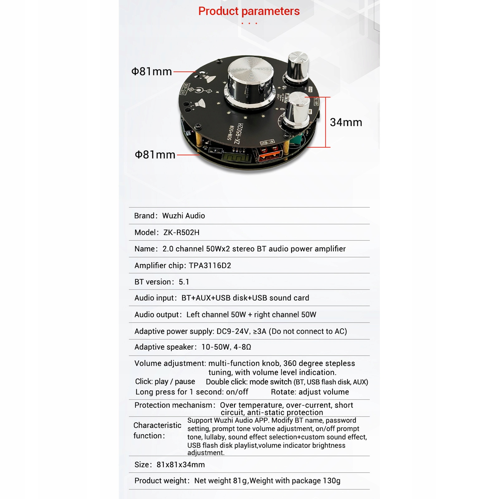 - Аудиовыход: левый канал 50 Вт, правый канал 50 Вт