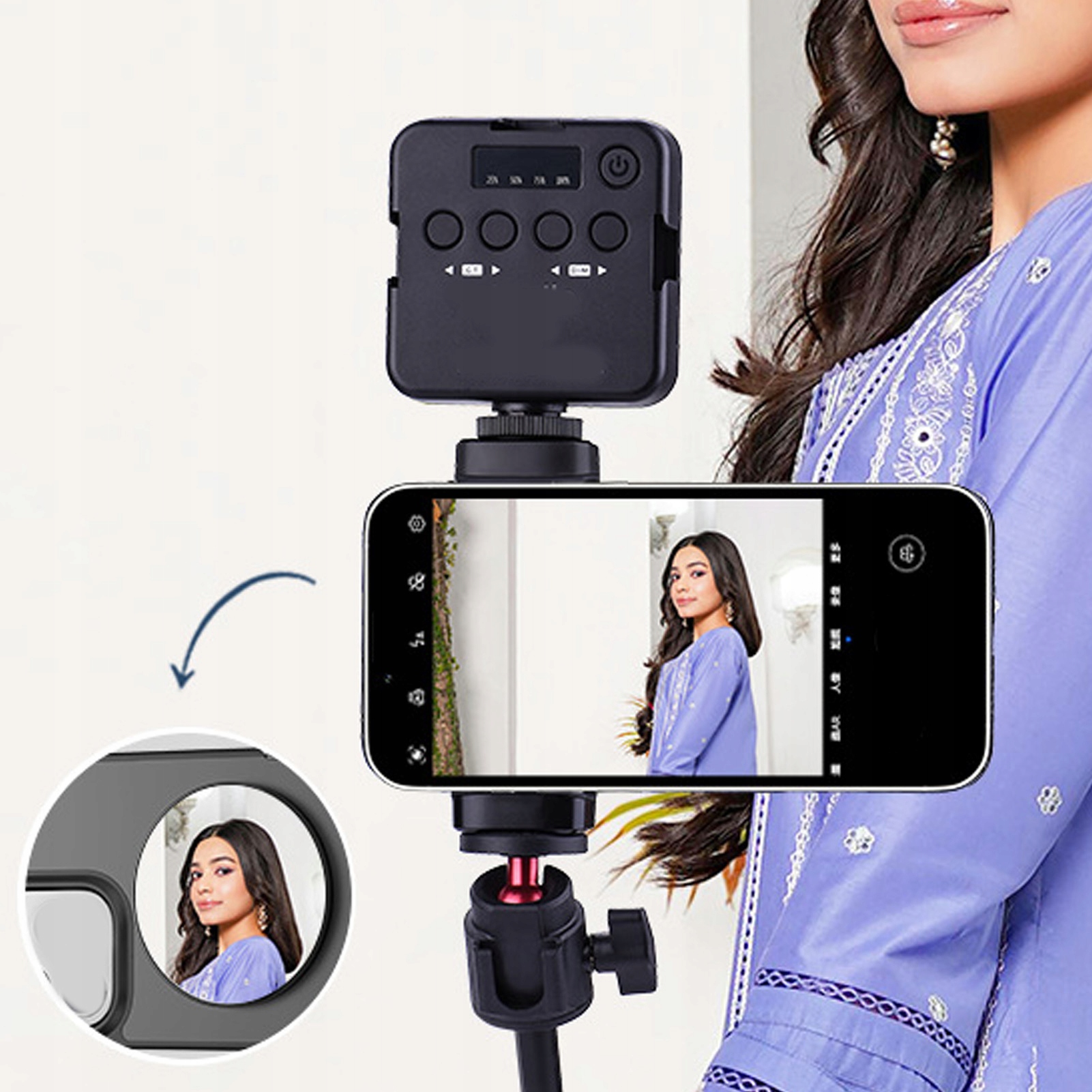 4. Легко сделать: магнитное зеркало для макияжа телефона позволяет увидеть ваш макияж, выражение лица, вы можете лучше настроить свое состояние, снимать более расслабленно и комфортно.