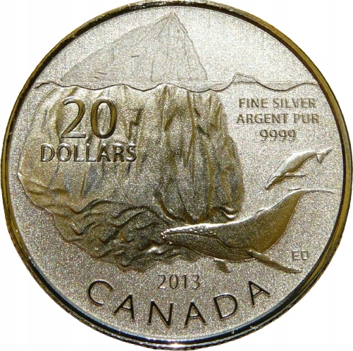 20 $ КАНАДА 2013 WHALE ARCTIC ICEBERG Ag 999
