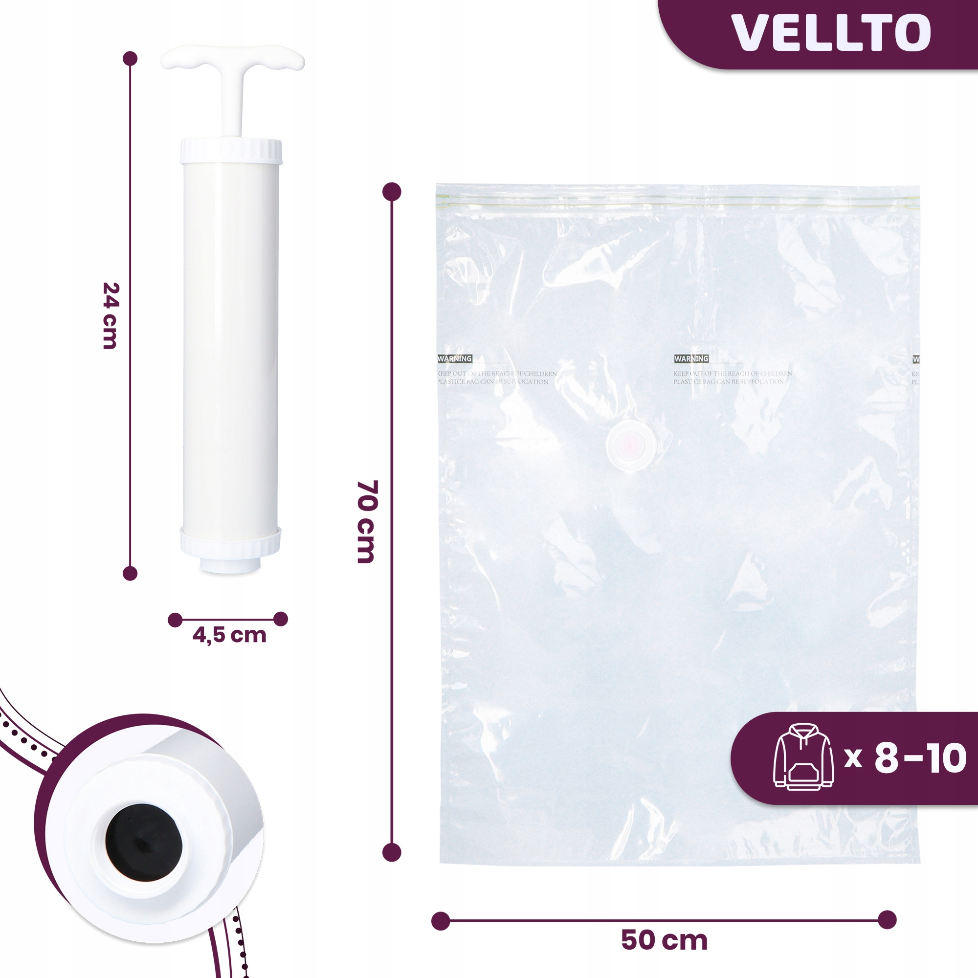✅ Бесплатный насос - в наборе - благодаря ему вы быстро избавитесь от воздуха из вакуумного мешка, и его низкий вес заставляет вас всегда иметь его с вами - даже на ходу!