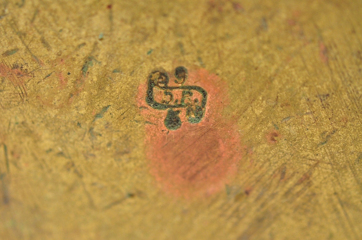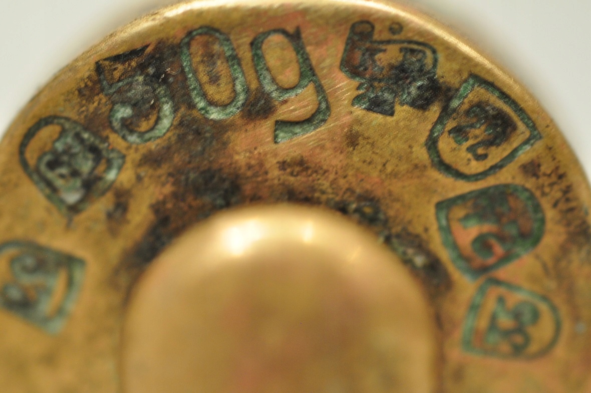 Плохо разборчивые немецкие подписи бюро легализации на ошейнике гирьки 20 г: