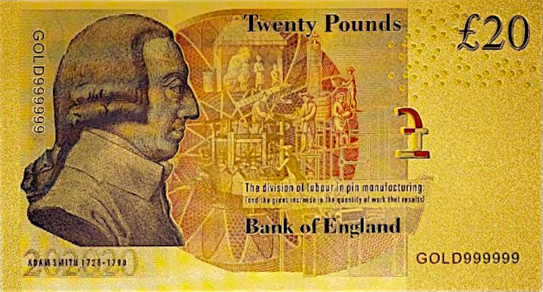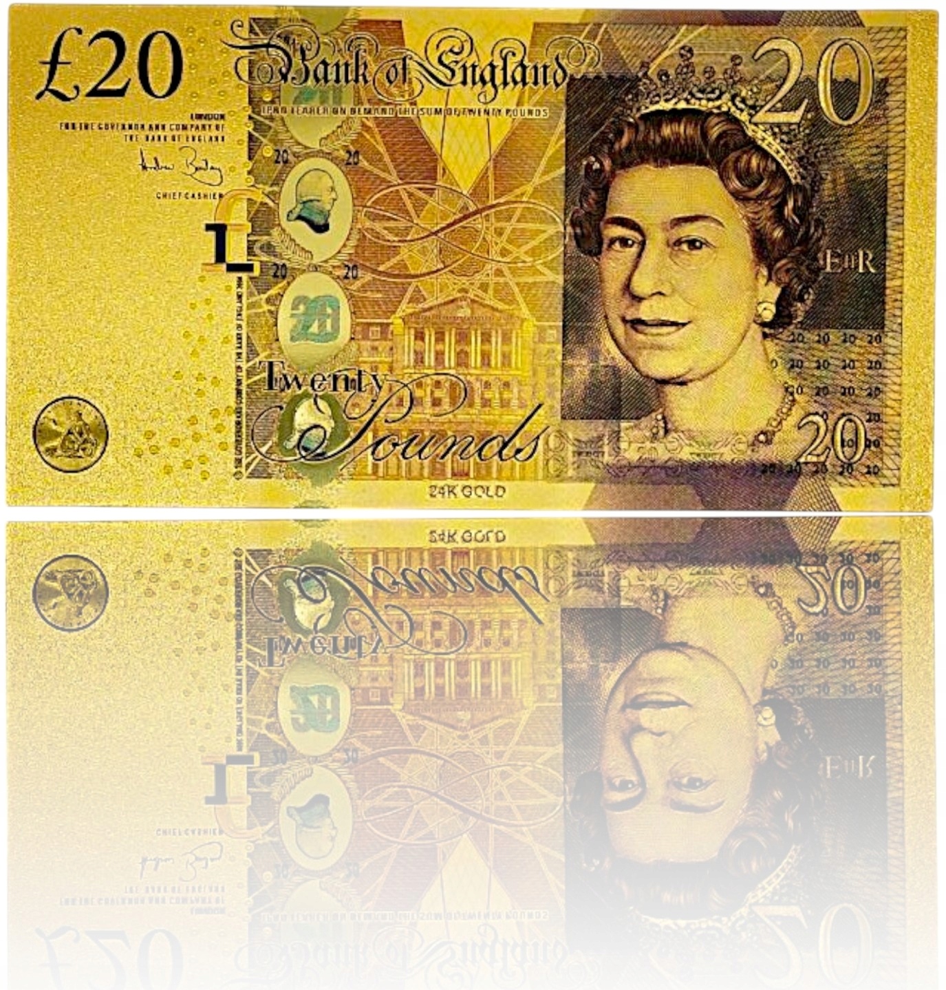 20 фунтов British Collector's Banknote Gold, сформированная реплика с украшением из ПВХ