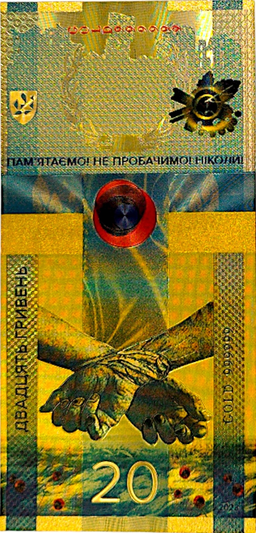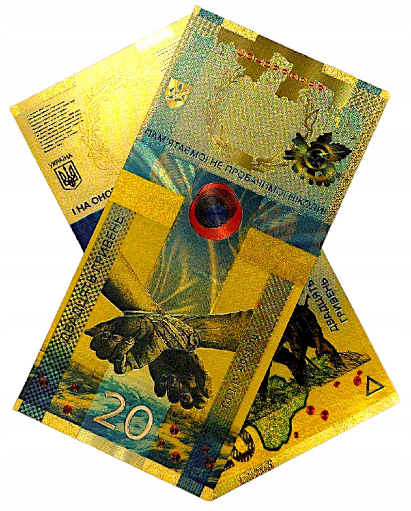20 ГРИВИН УКРАЇНА НЕ ЗАБУДЕМО! МИ НЕ ЗДАЕМСЯ! Колекція позолочених банкнот
