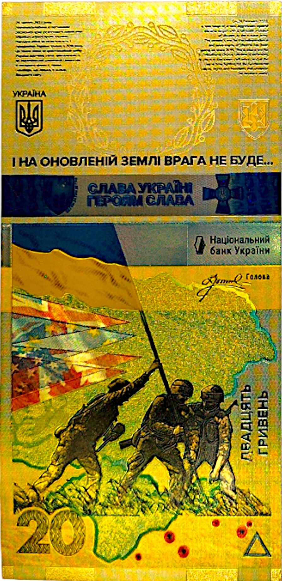20 ГРИВИН УКРАЇНА Позолочена Колекційна Банкнота НЕ ЗАБУДЕМО!
