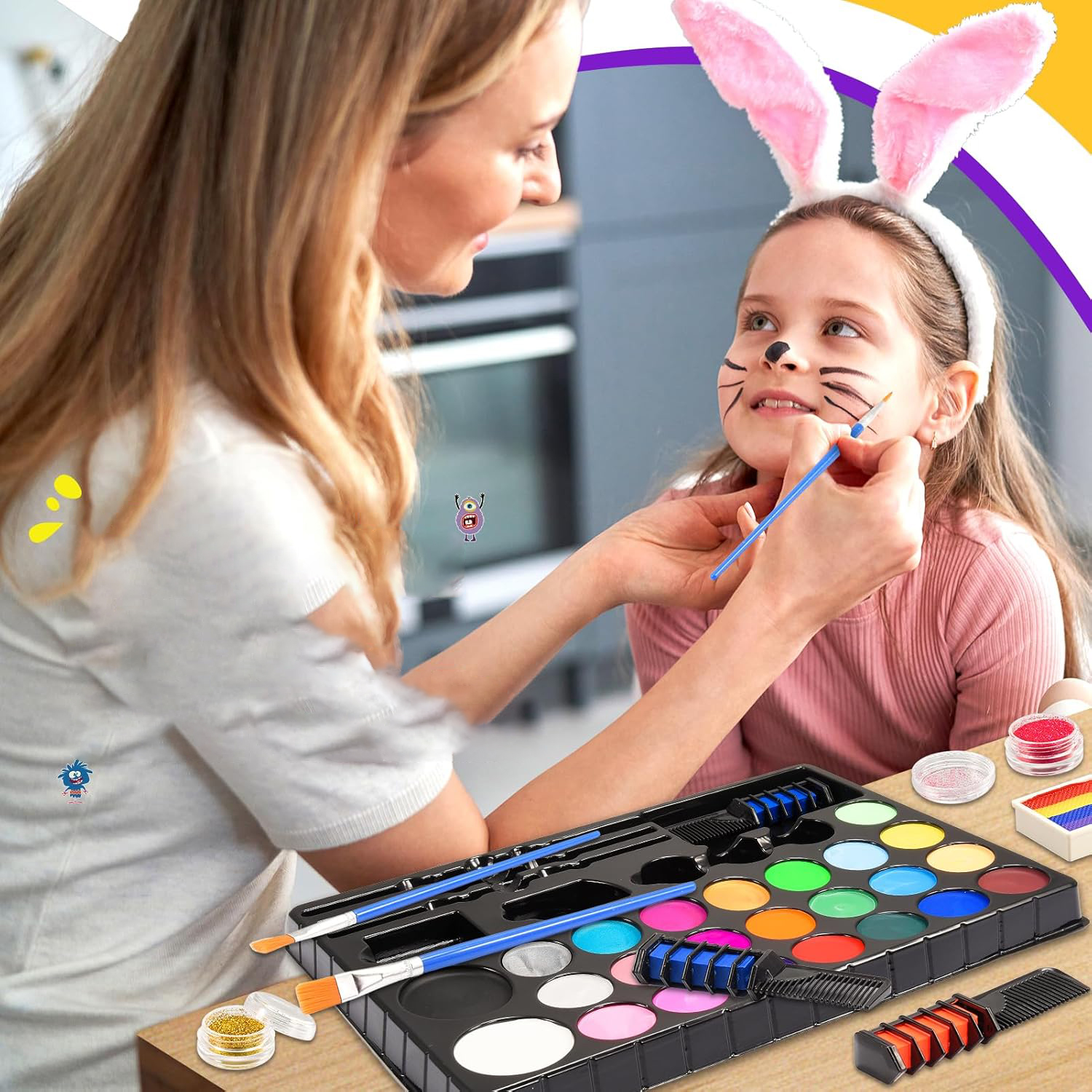 Детский набор для макияжа идеально подходит для Хэллоуина, карнавала, Рождества, Пасхи, дня рождения ребенка, костюмированных вечеринок, косплея , художественные выступления и многое другое. Макияж в виде феи, пиратской легенды или супергероя может способствовать развитию вашего ребенка. В этот набор для рисования входит множество забавных стилей, и его весело наряжать вместе с детьми!