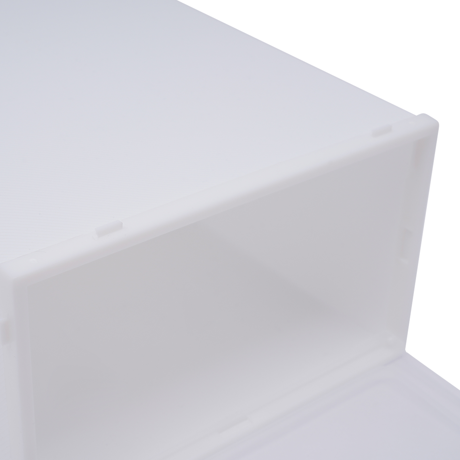 - подключение к защелке: Белая рама этой обувной коробки была разработана с прикрепленными защелками. Блокируя защелки, перекрывая обувь, вы можете твердо соединить вместе.