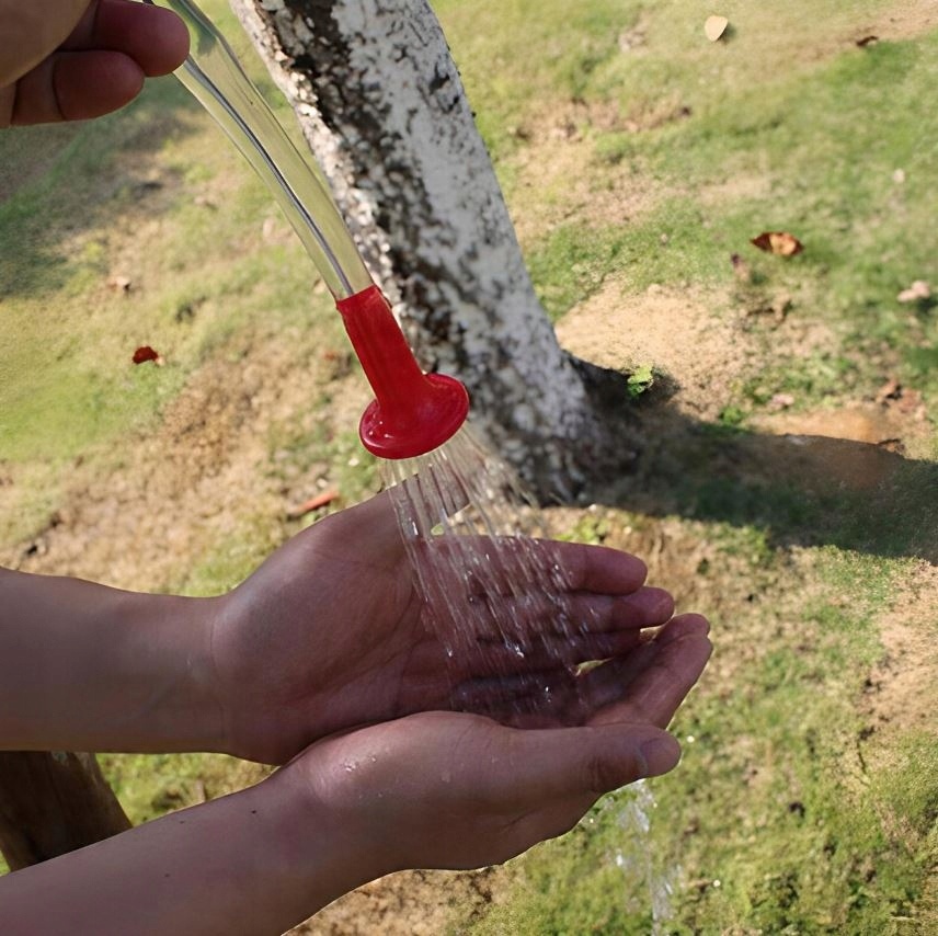 Чтобы принять душ, просто присоедините шланг с шапочкой для душа к предохранительному клапану, поверните клапан в положение «ВКЛ» и можно насладитесь прелестями купания на лоне природы.