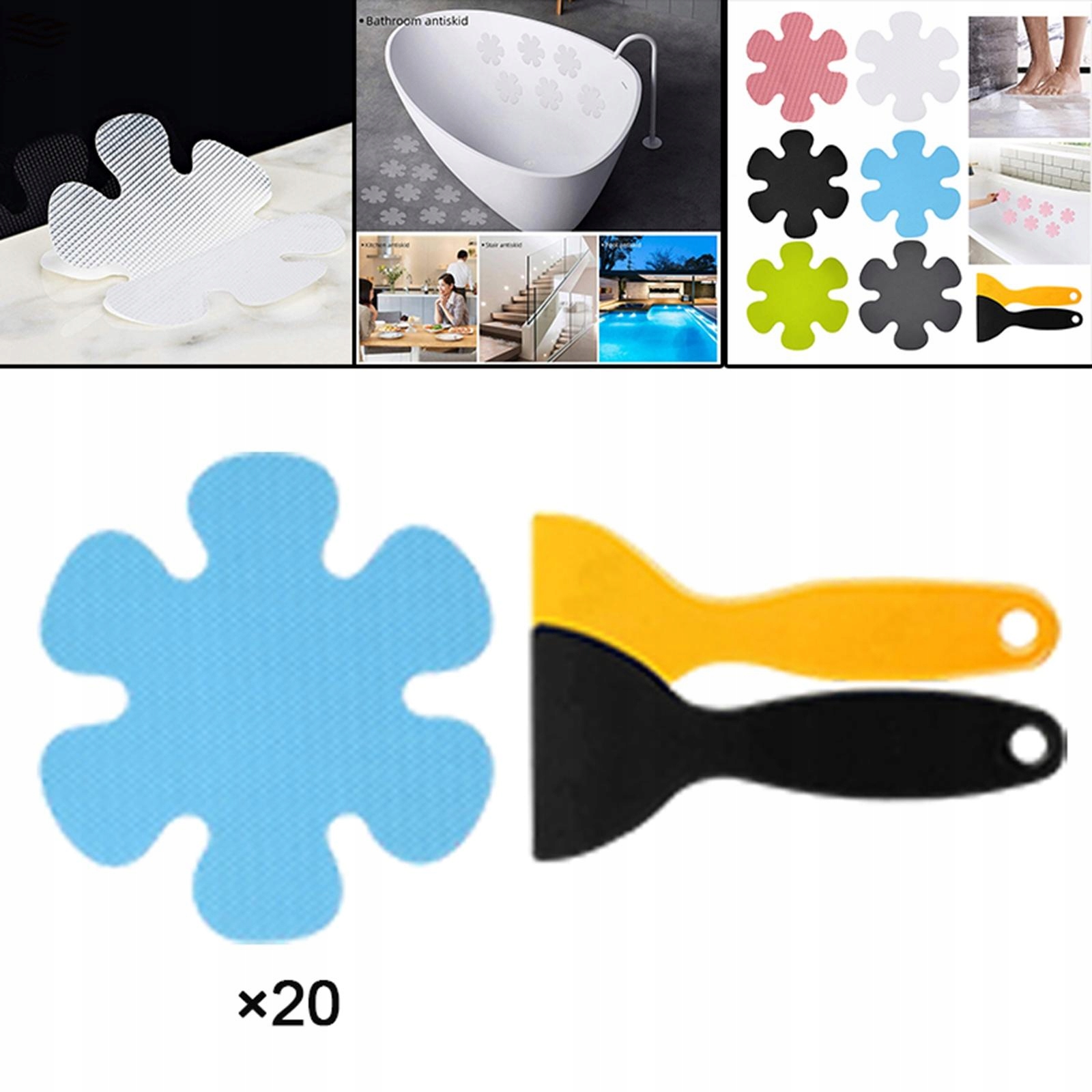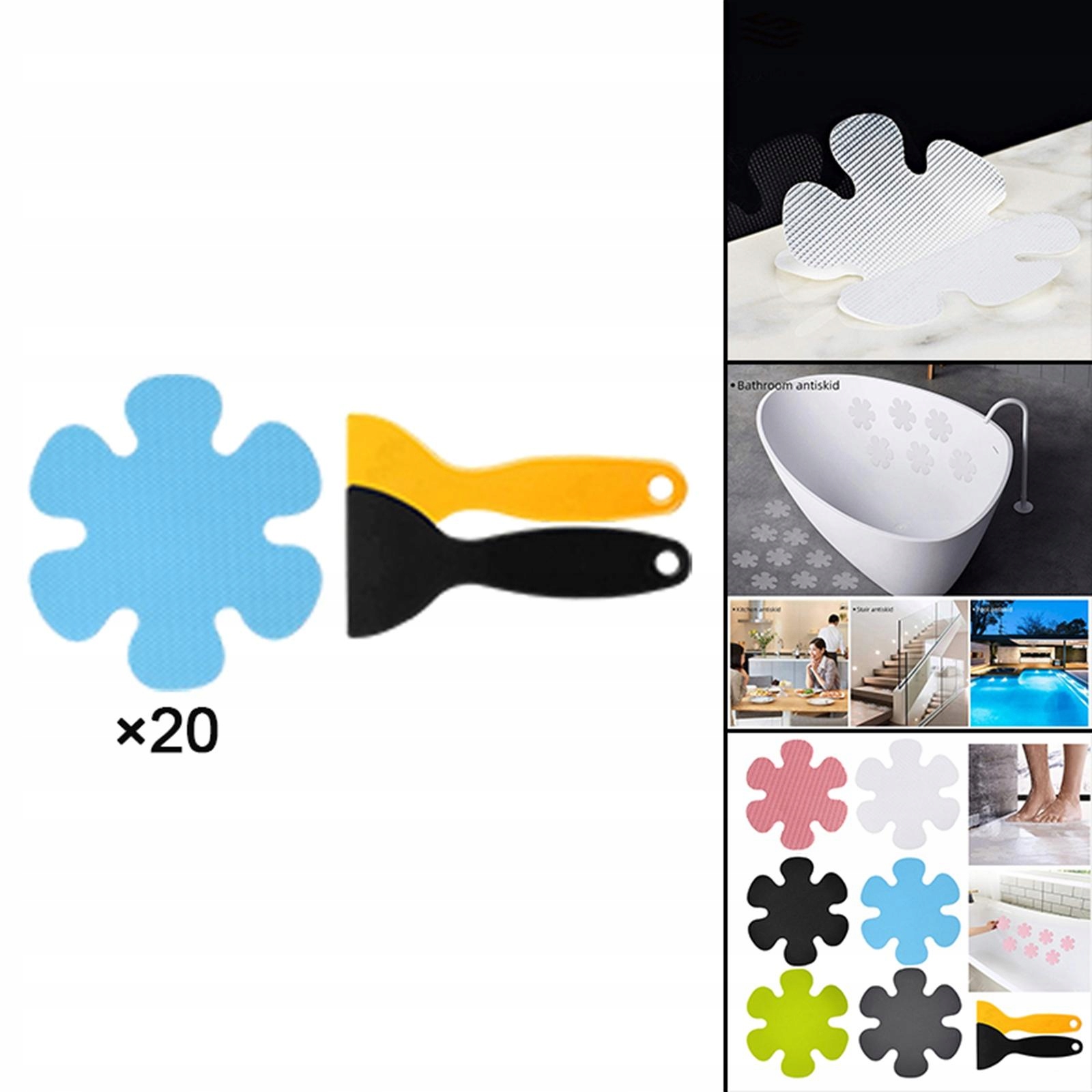 20 -х не -скользящие наклейки, водонепроницаемые, красочные цветы, с скребком, синий