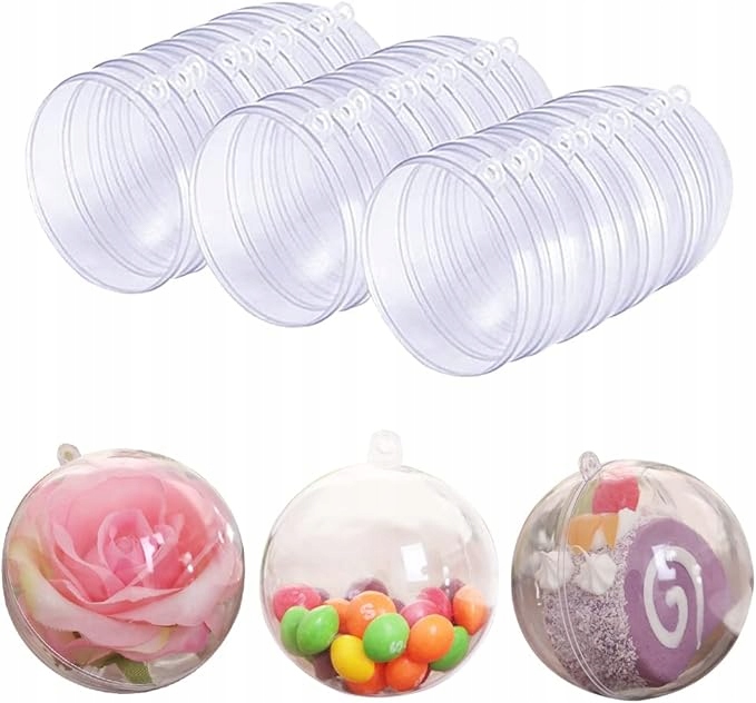 - Легко в использовании - любой прозрачный пластиковый безделушка разделен на две части, которые могут быть свободно открыты и закрыты. Просто заполните, защелки, и это готово! Каждая прозрачная рождественская безделушка также содержит петлю подвески, чтобы легко прикрепить ленту, подарочные бирки и т. Д.