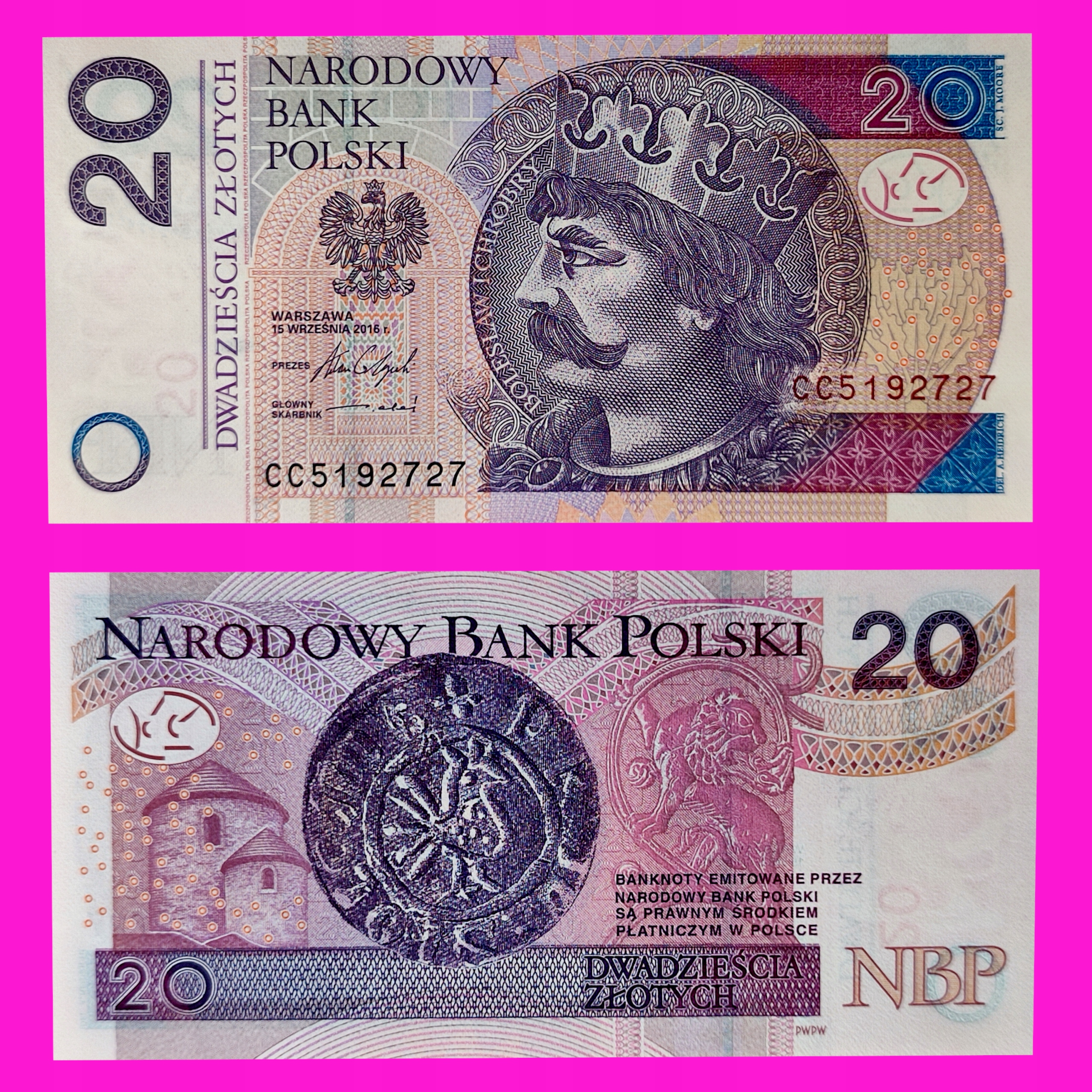20 PLN 2016 Banknote UNC Номер SERI CC 51927XX DZIEDZIC67